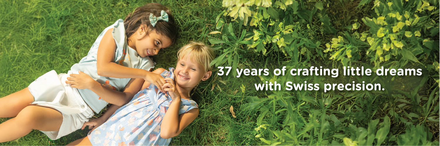 Milou is a Swiss Lifestyle Brand with over three decades of rich legacy in dressing up children. Our clothing is crafted in top notch Swiss Quality and Care, ensuring style and comfort at all times. Our commitment extends beyond fashion, we are dedicated to making conscious choices, carefully considering our social and environmental impact.