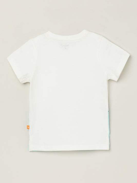 Milou Kids Half Sleeve Cotton Bio Washed Double Coloured Printed T-Shirt for Boys -White Alyssum