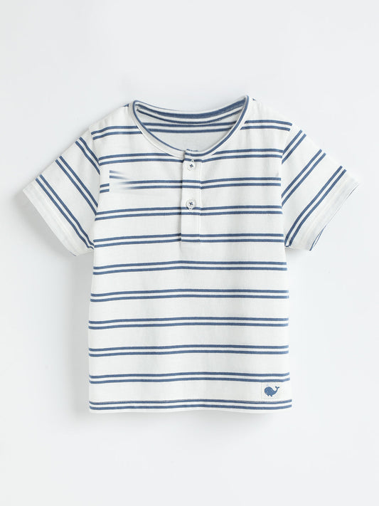 Milou Cotton Half Sleeves Bio Washed striped T-Shirt -MGBBB004-WAFBL