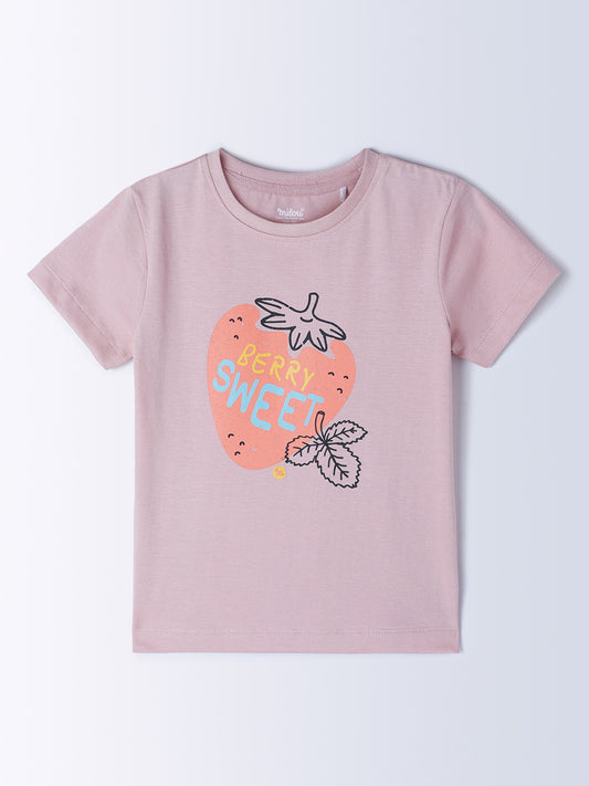 Milou Kids Cotton Bio Washed Half Sleeve Printed Rub and Smell T-Shirt for Girls - Pink