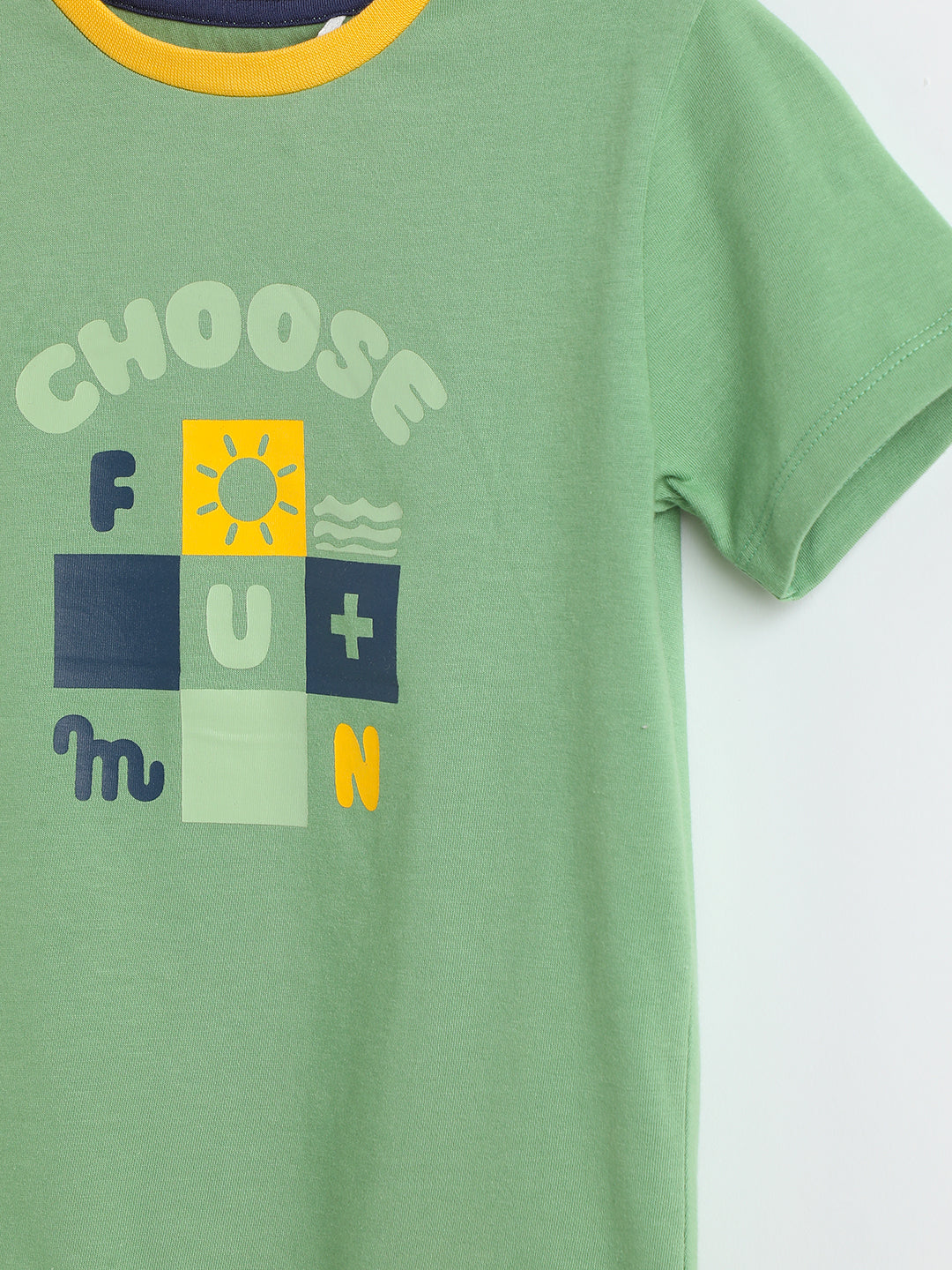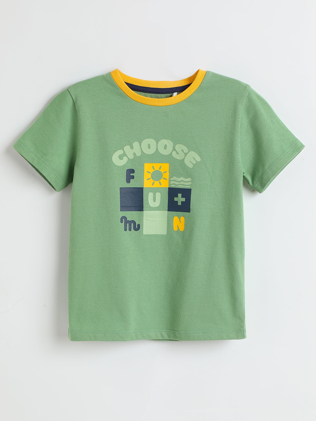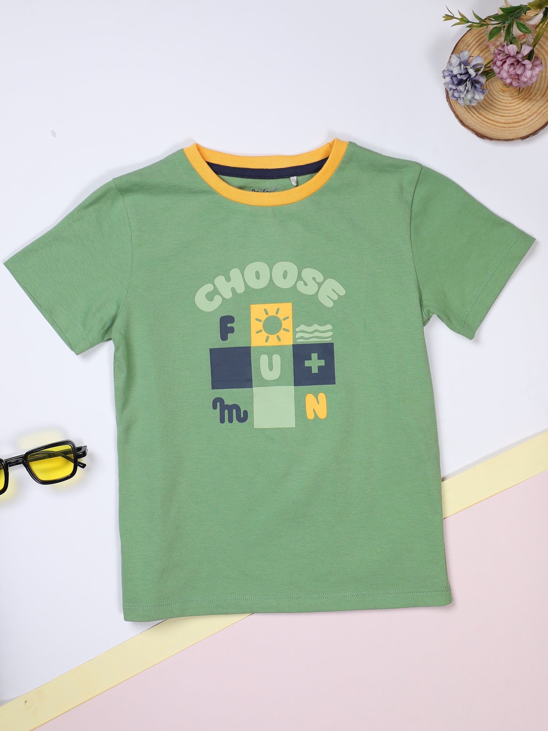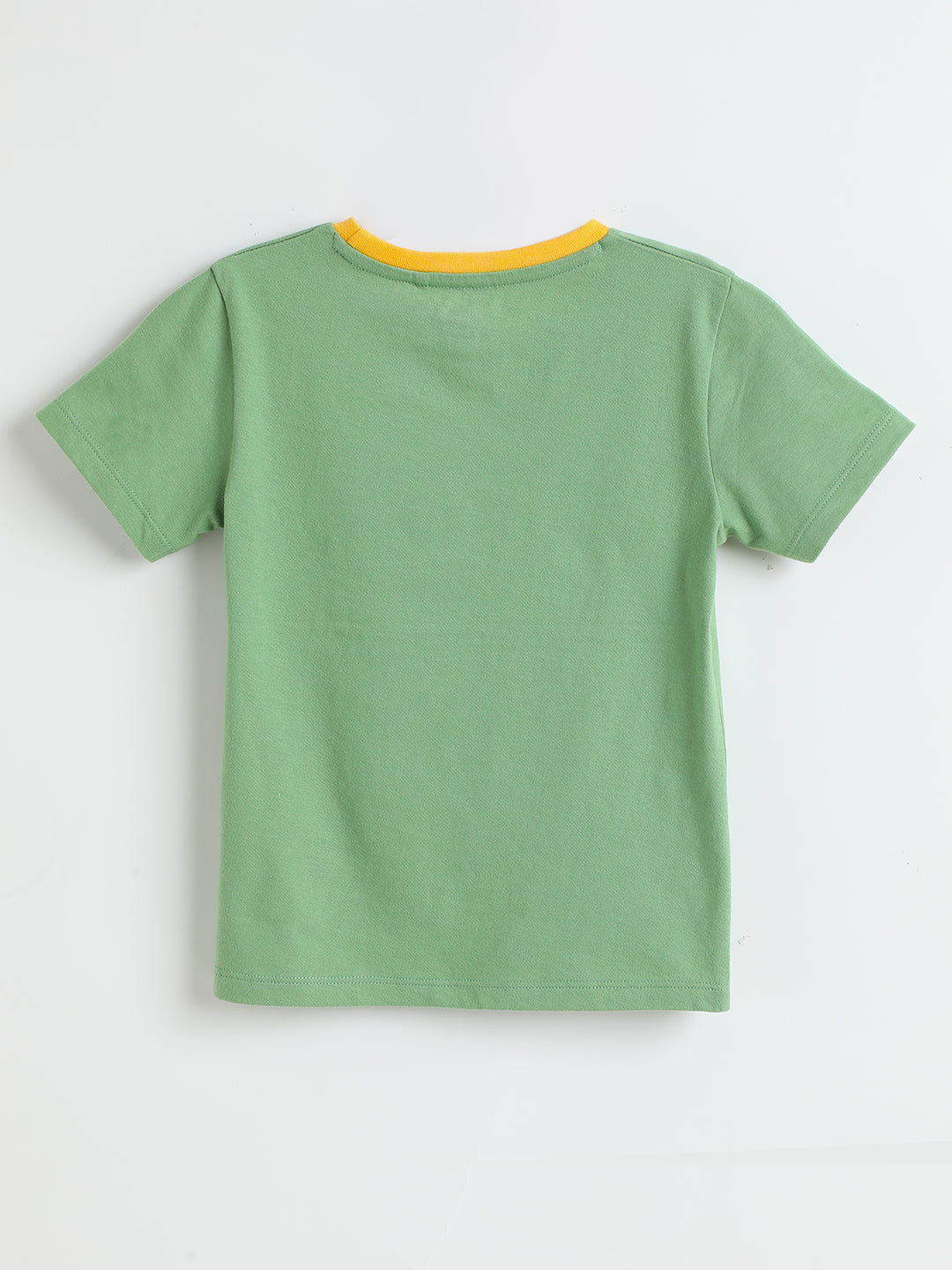 Half sleeve Round neck T-shirt. Crafted with the soft 100% Cotton fabric, treated with bio wash, to ensure the safest and most comfortable clothing for the young ones.