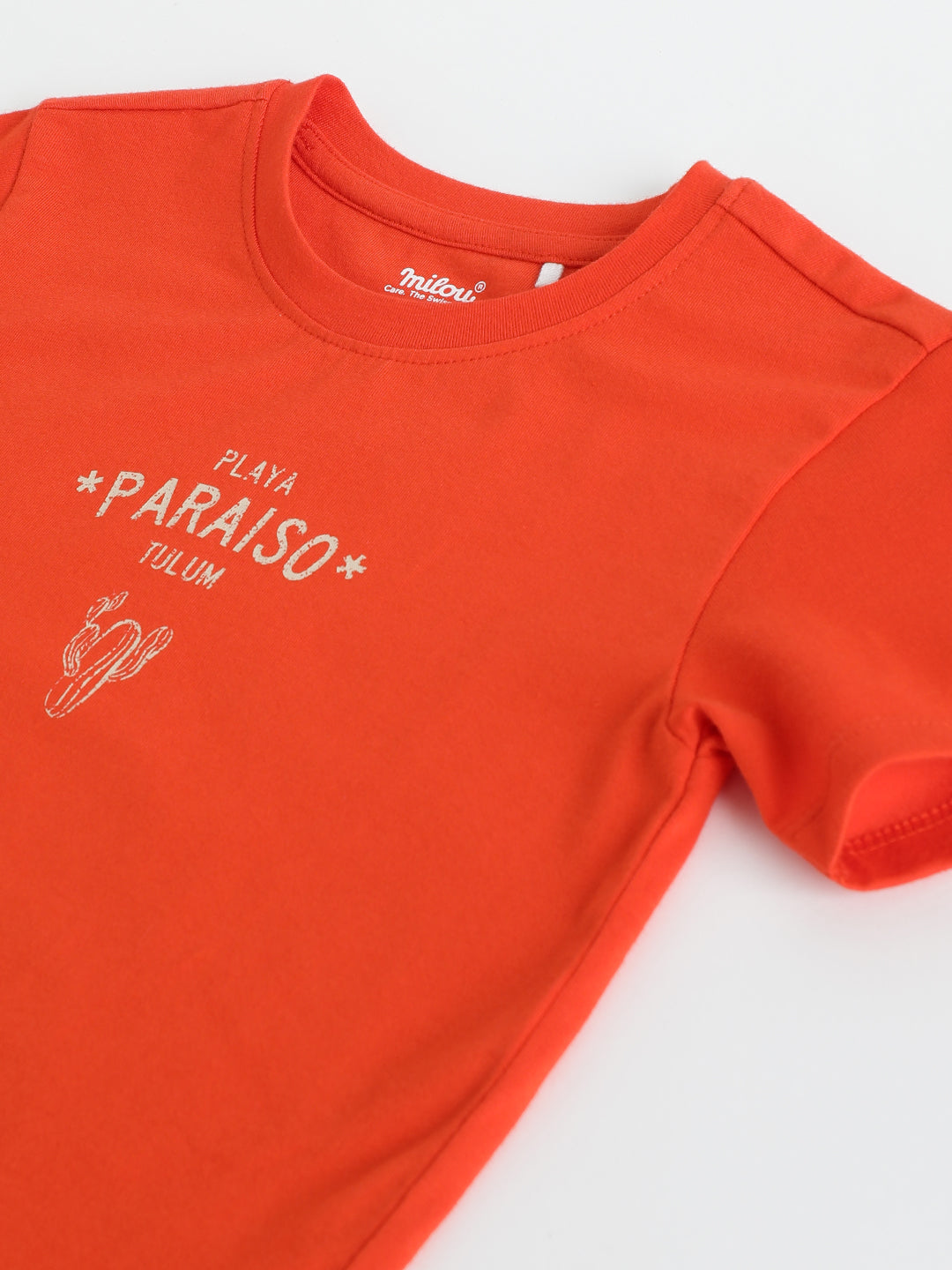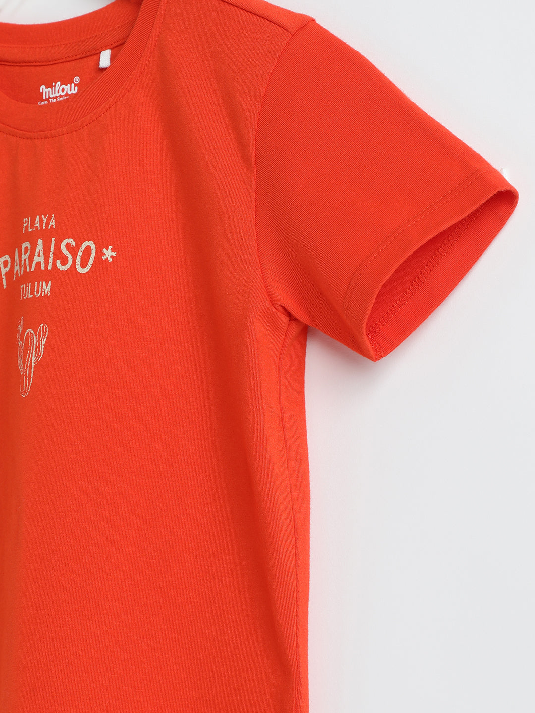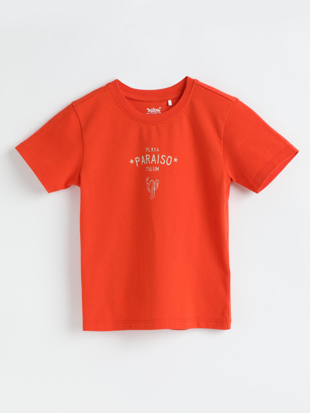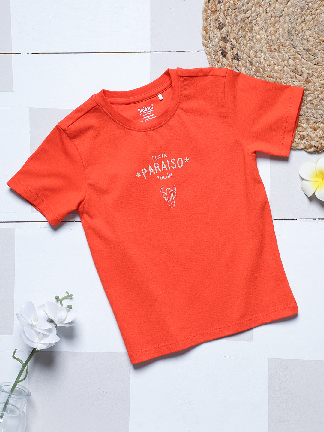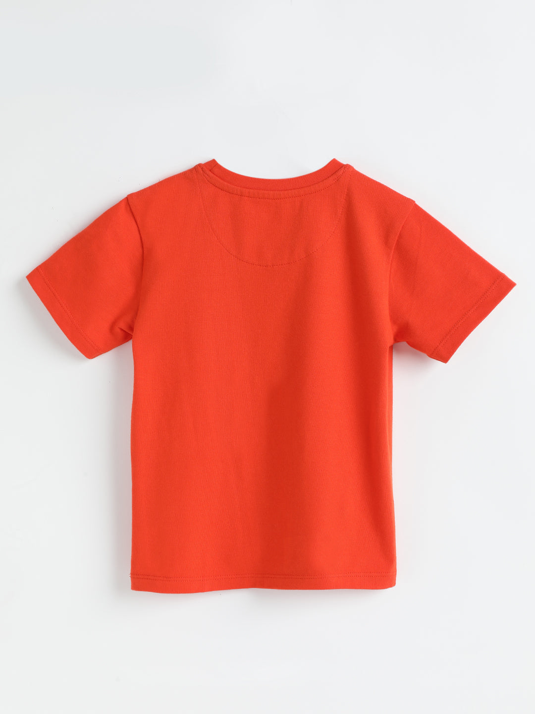 Half sleeve Round neck T-shirt. Crafted with the soft 100% Cotton fabric, treated with bio wash, to ensure the safest and most comfortable clothing for the young ones.