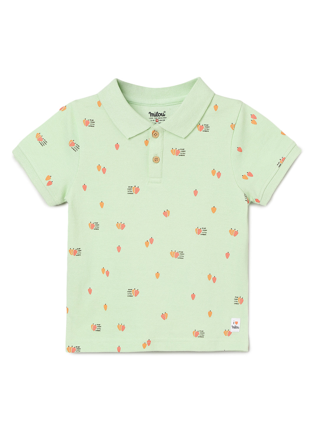 Boys' half sleeve Polo T-shirt with all over prints. Crafted with the soft 100% Cotton fabric, treated with bio wash, to ensure the safest and most comfortable clothing for the young ones.