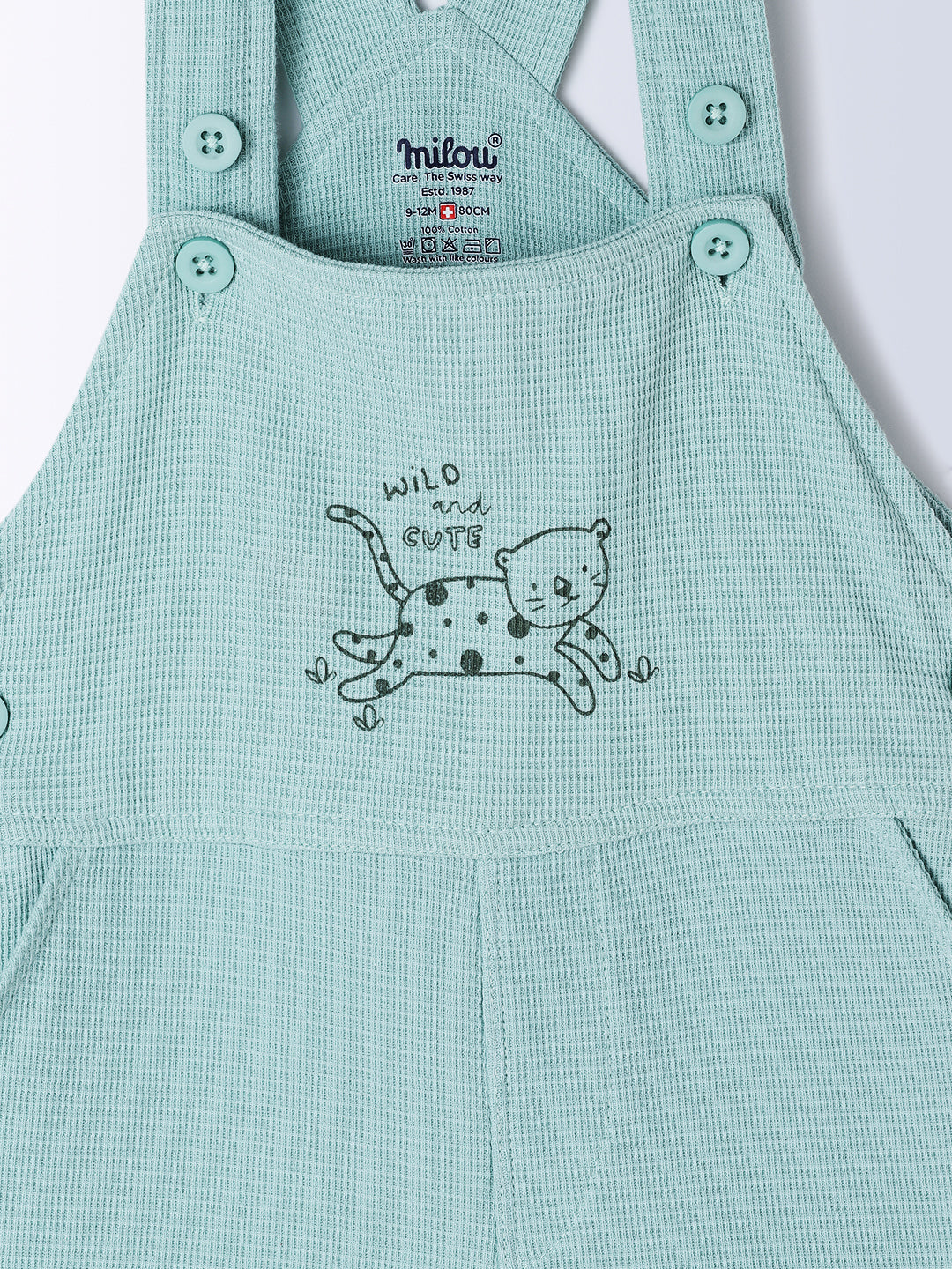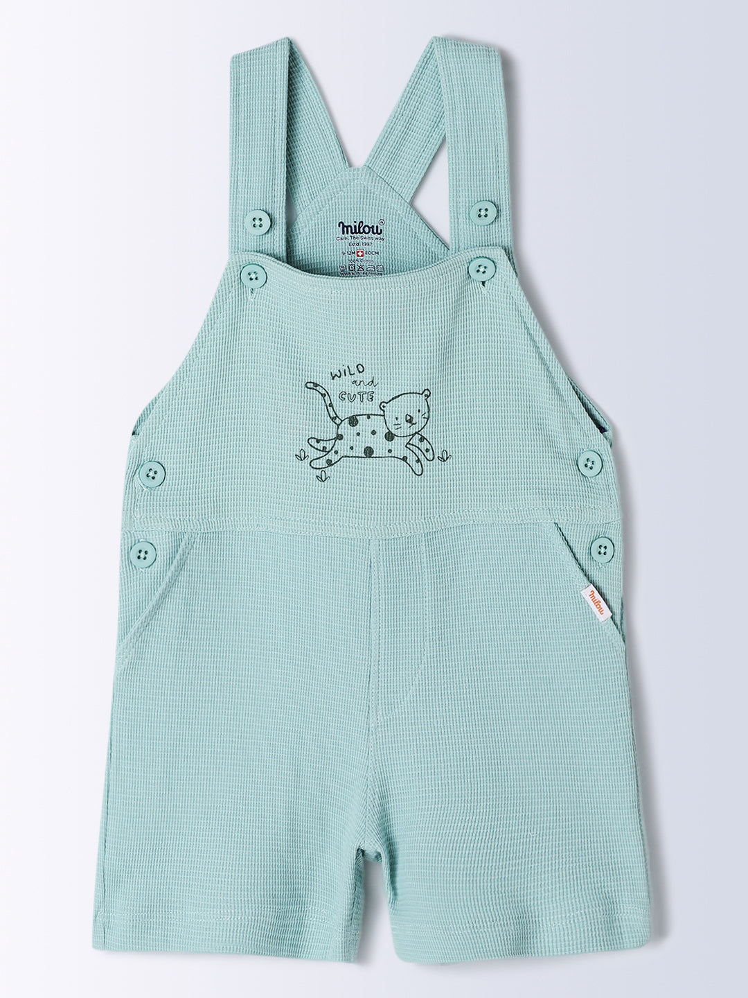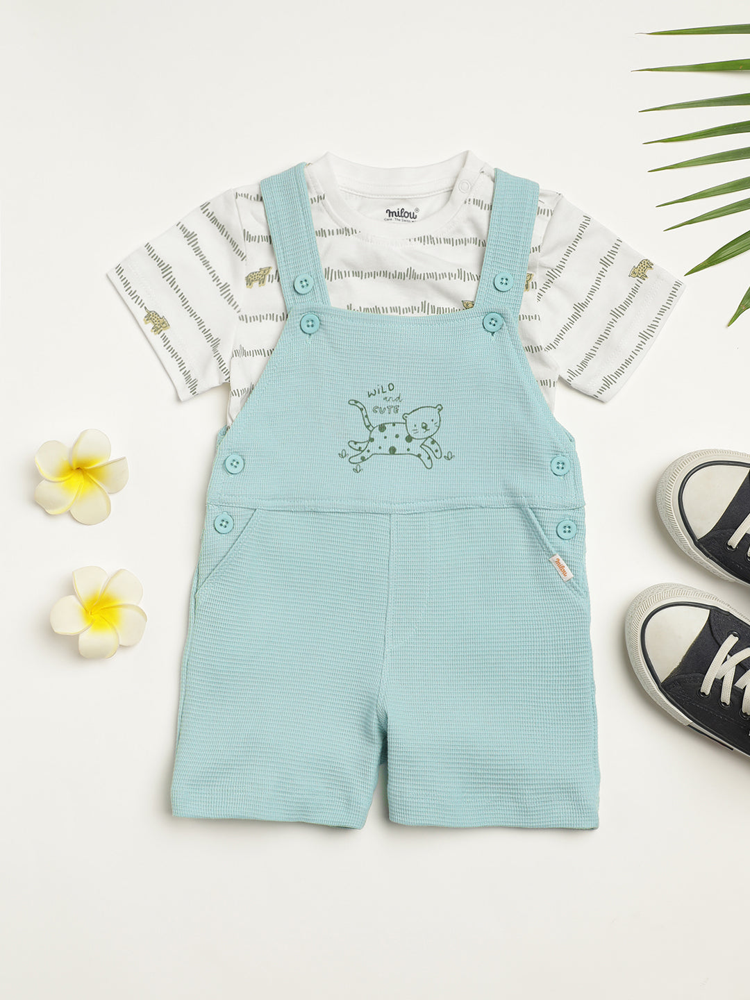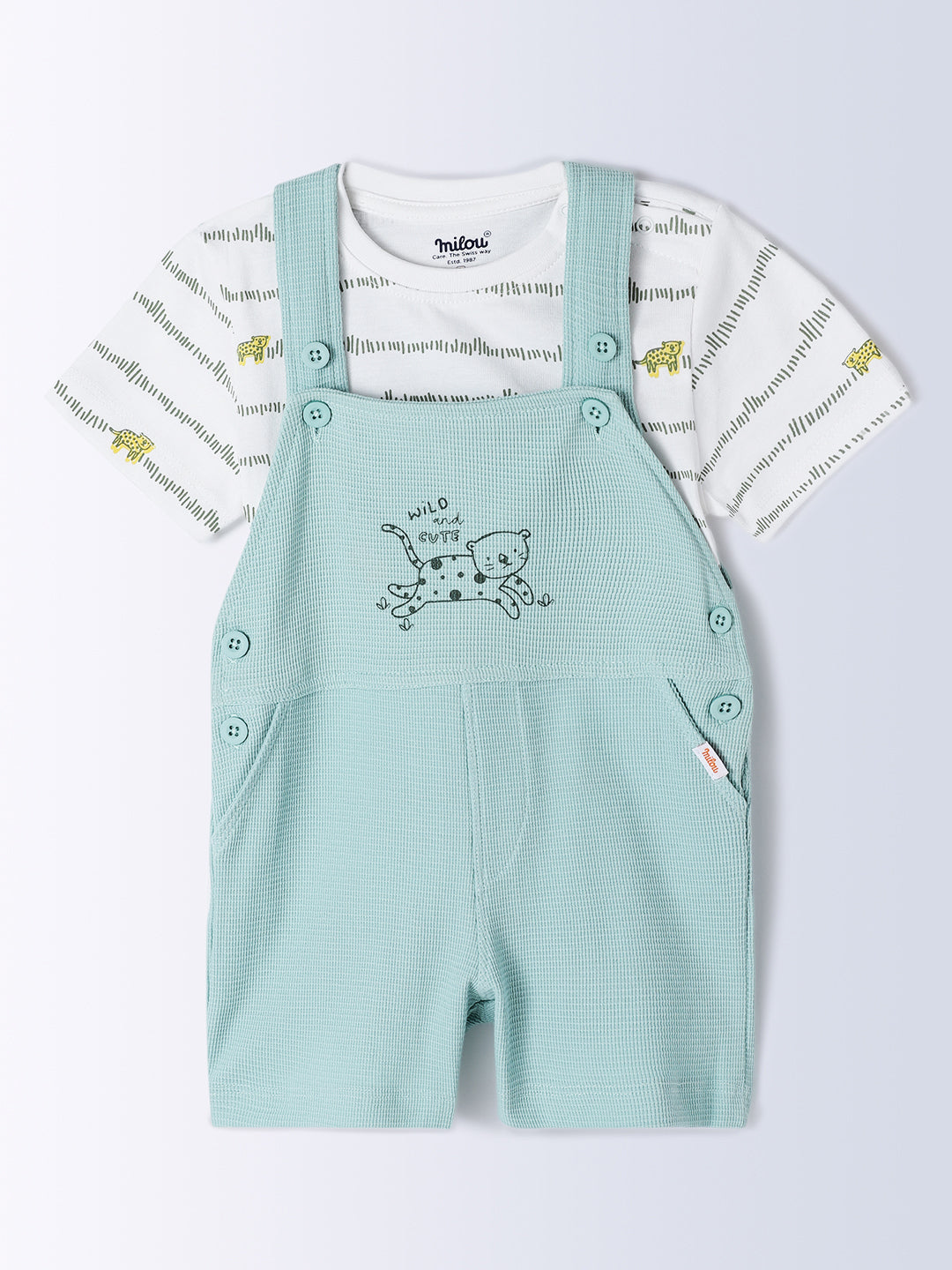 Milou Kids Cotton Bio Washed Half Sleeve Printed Dungaree Set for Boys - White & Green