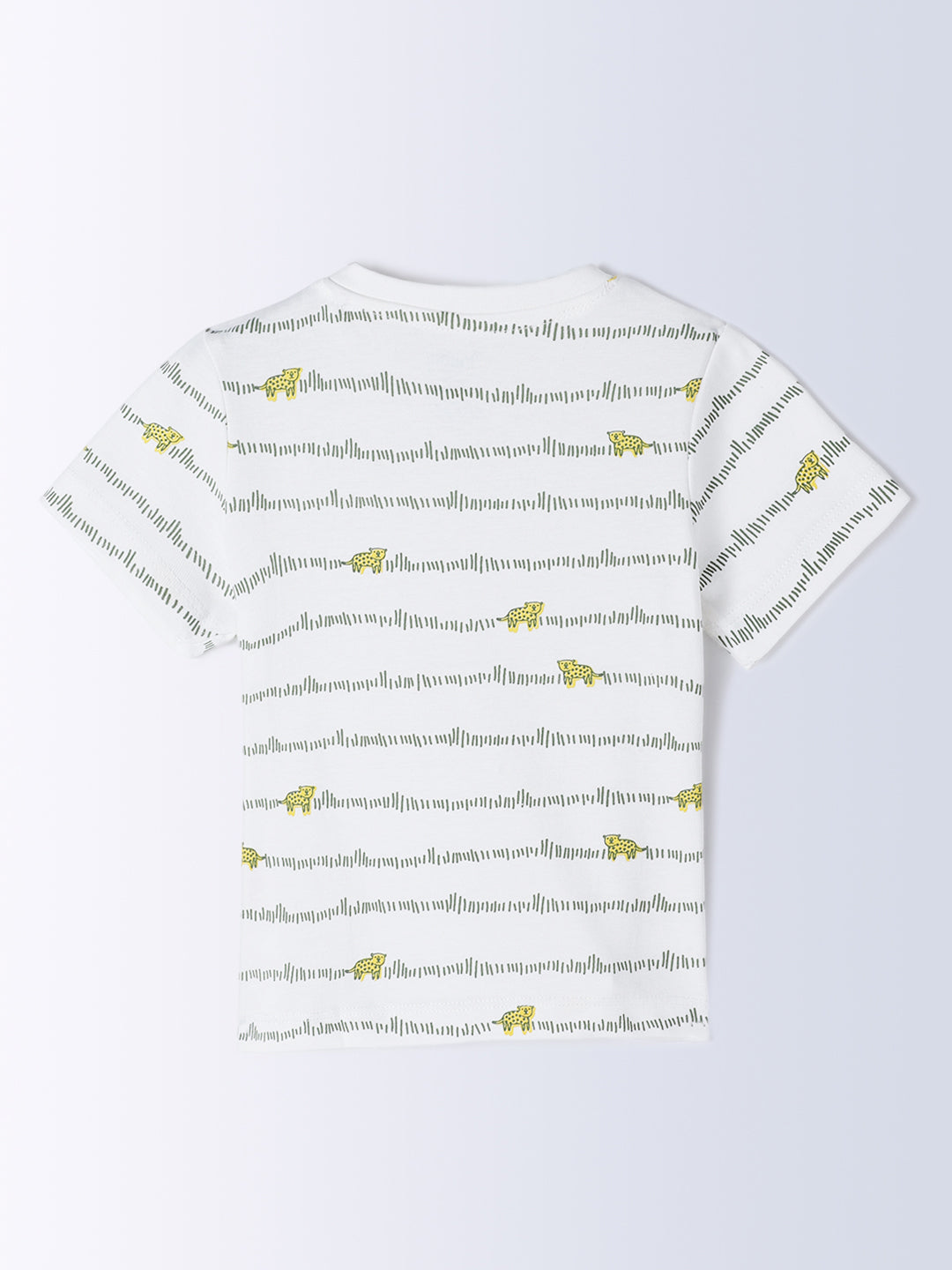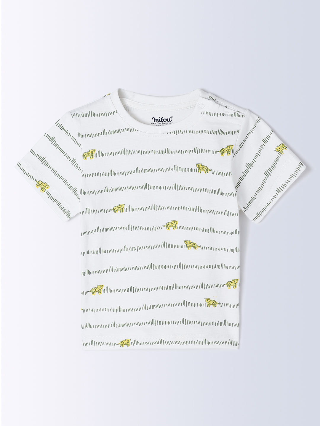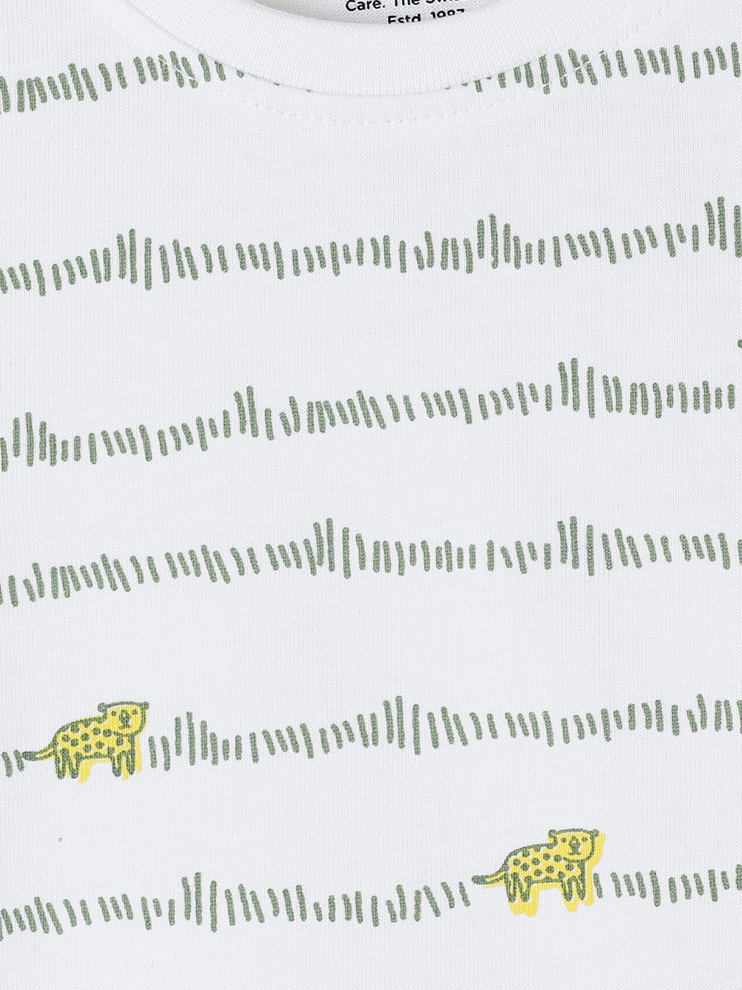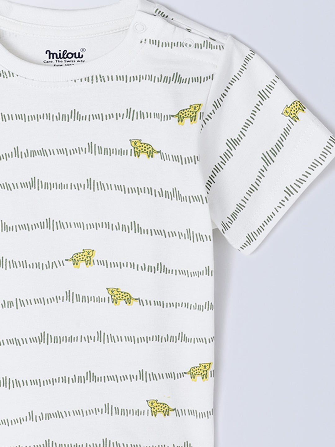 Milou Kids Cotton Bio Washed Half Sleeve Printed Dungaree Set for Boys - White & Green