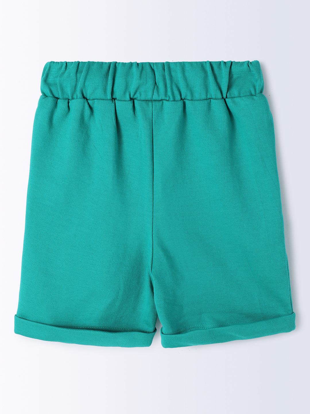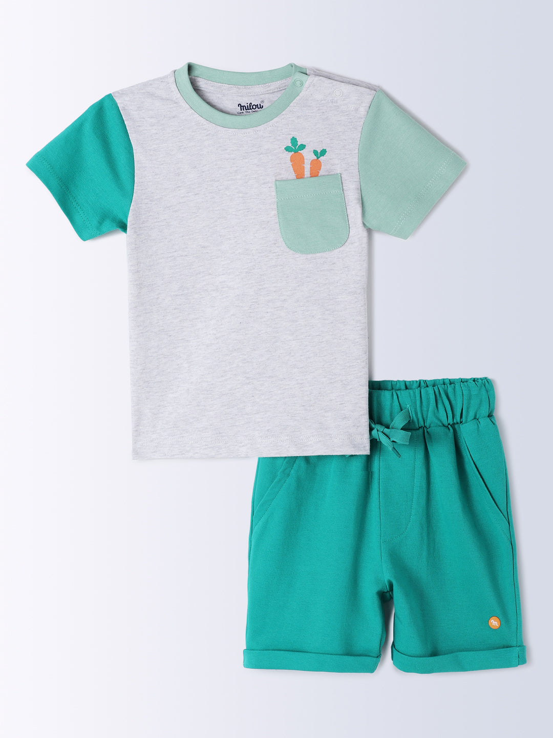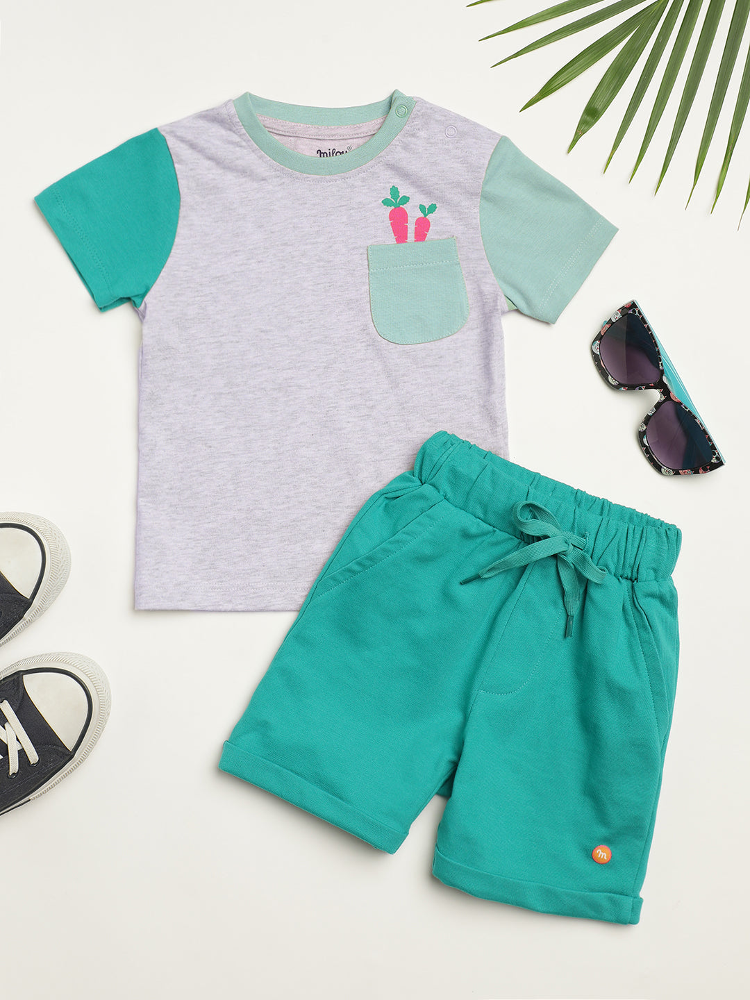Milou Kids Cotton Bio Washed Half Sleeve Solid Bio Washed Tshirt & Shorts Co-ord Set for Boys - White & Green