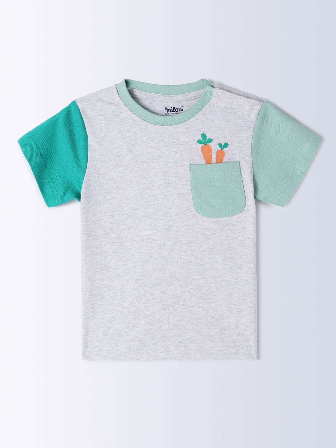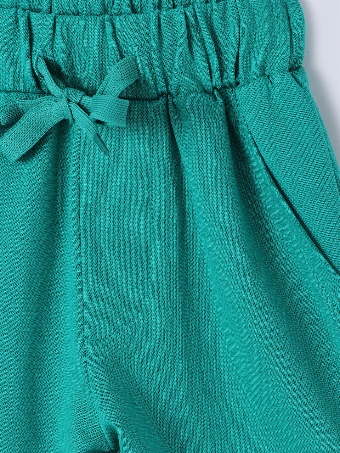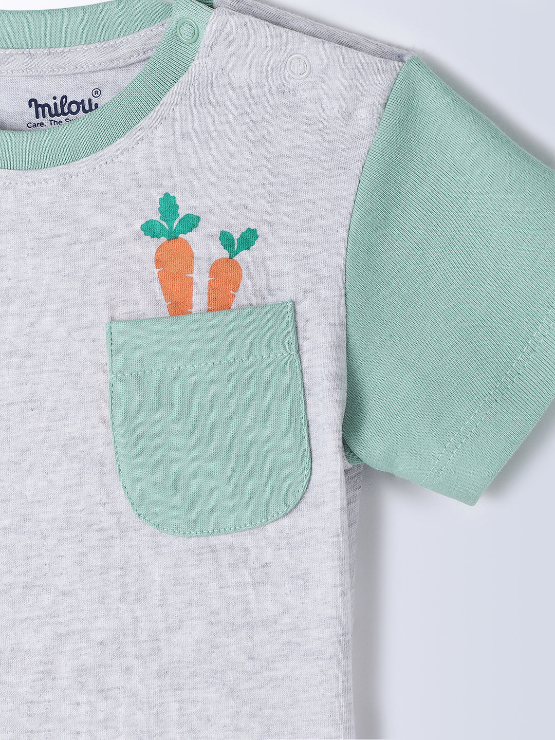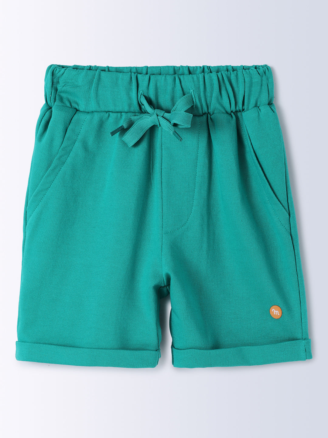 Milou Kids Cotton Bio Washed Half Sleeve Solid Bio Washed Tshirt & Shorts Co-ord Set for Boys - White & Green