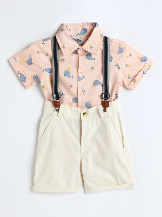 Milou Kids Cotton Solid Bio Washed Top & Shorts Co-ord Set for boys -BBNCSET029-CLDPK