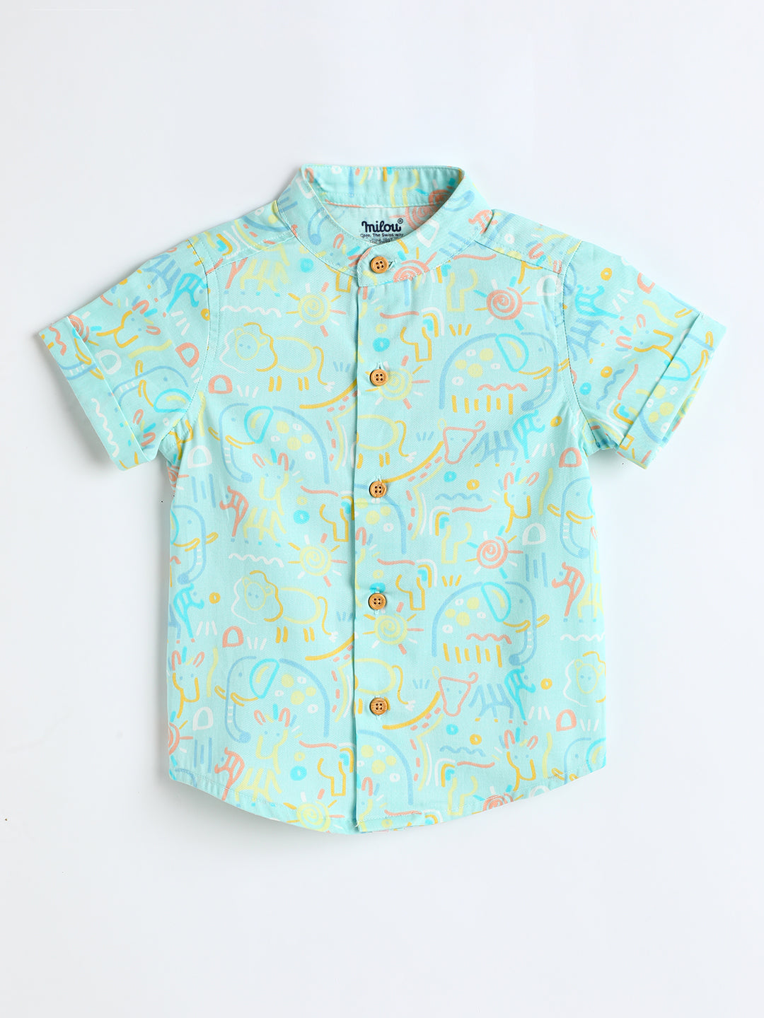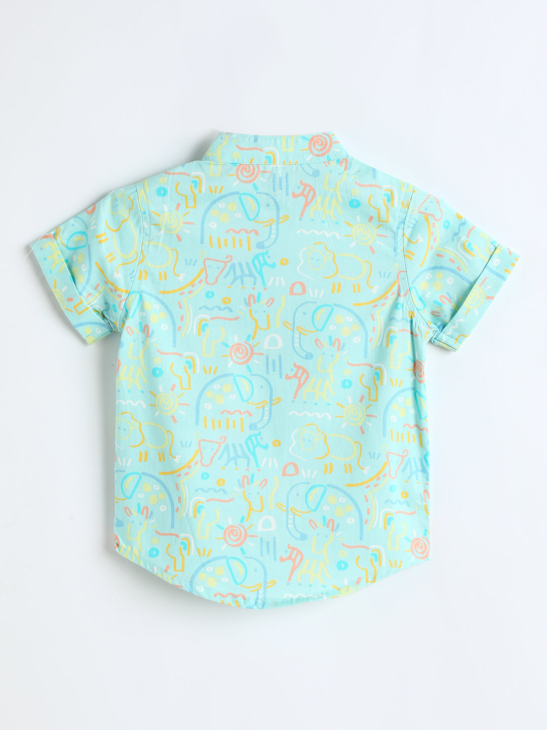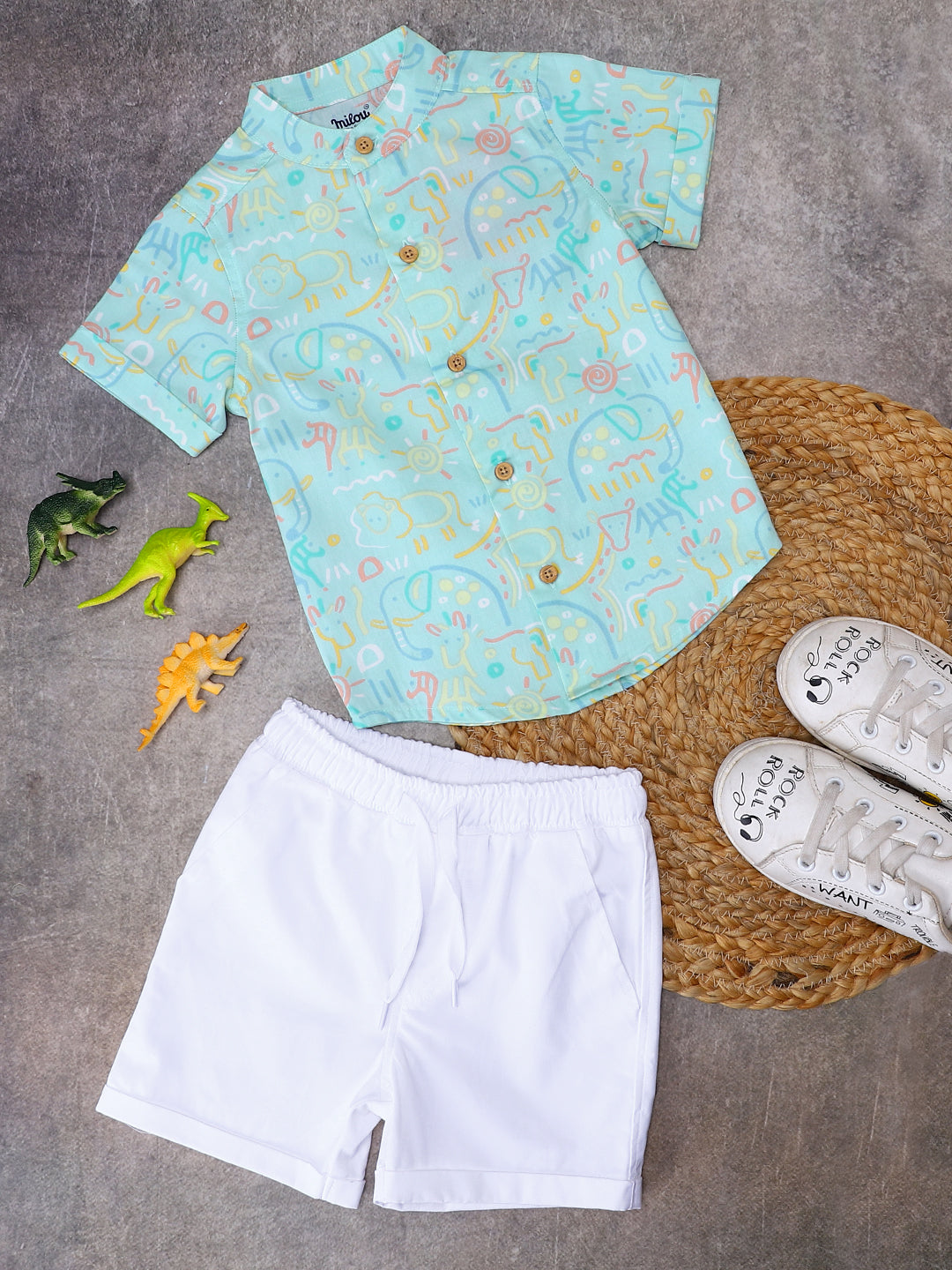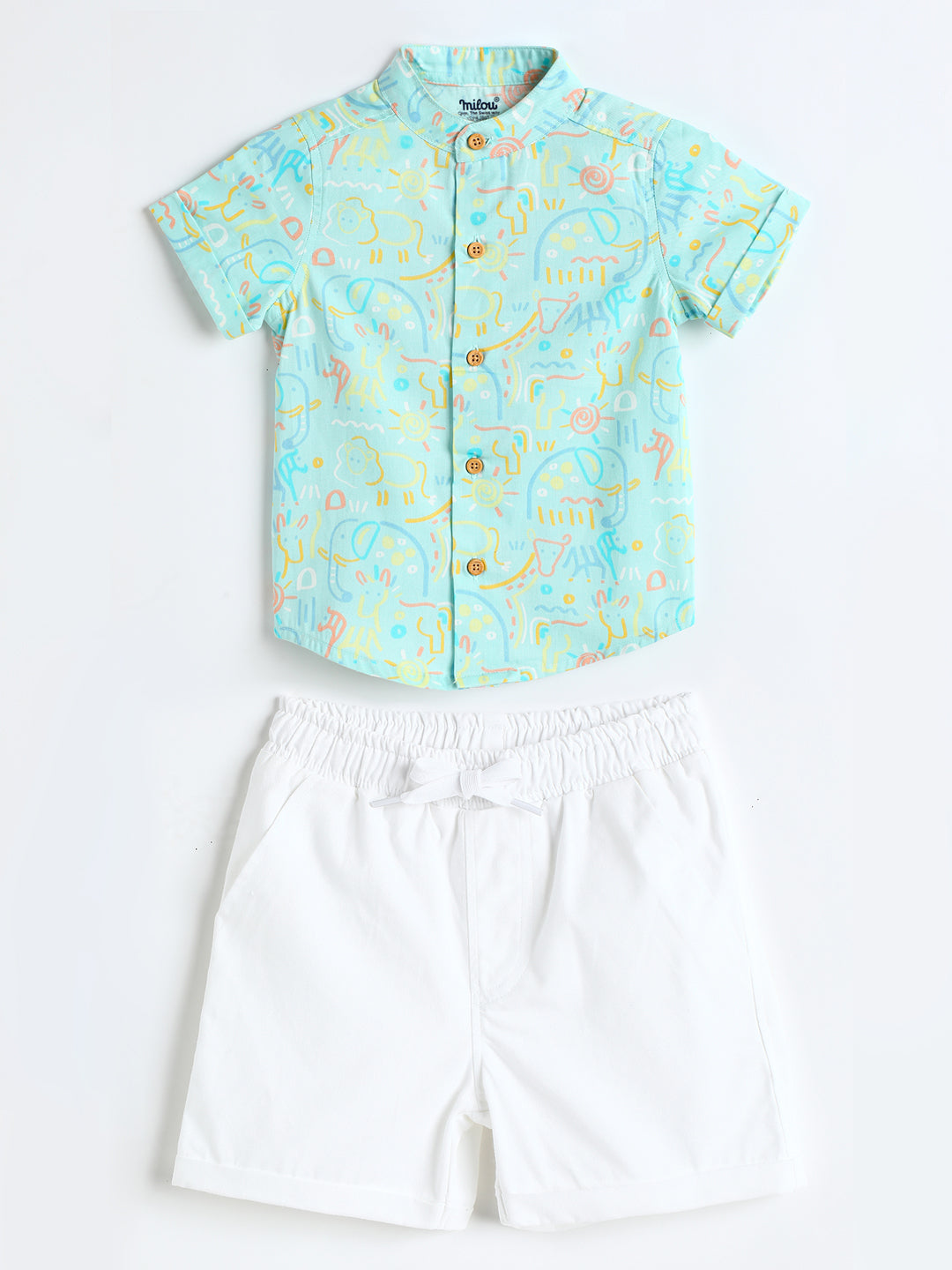 Milou Kids Cotton Solid Bio Washed Top & Shorts Co-ord Set for boys-BBANSET033-SKYLT