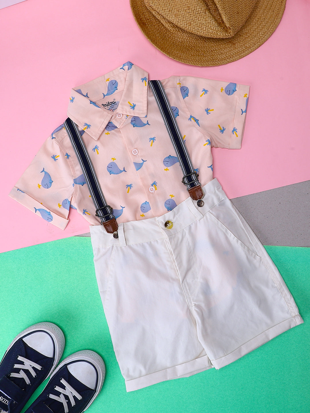 All Over Printed Top with detailing sleeves, paired with shorts. Crafted with the soft 100% Cotton fabric, treated with bio wash, to ensure the safest and most comfortable clothing for the young ones.