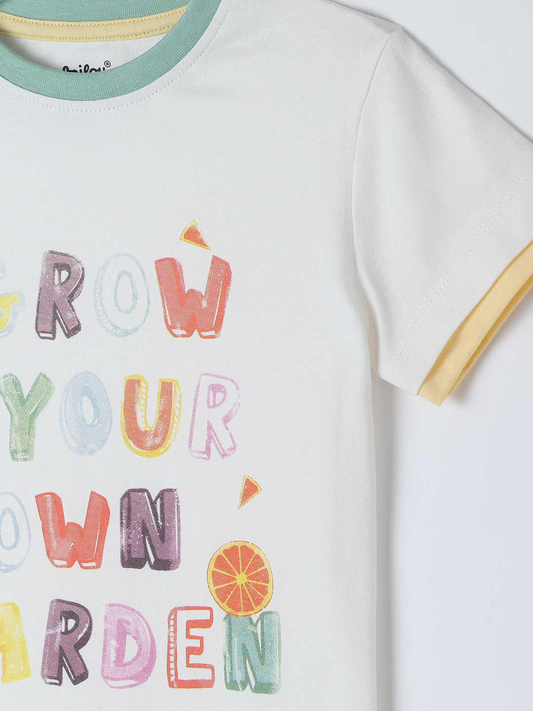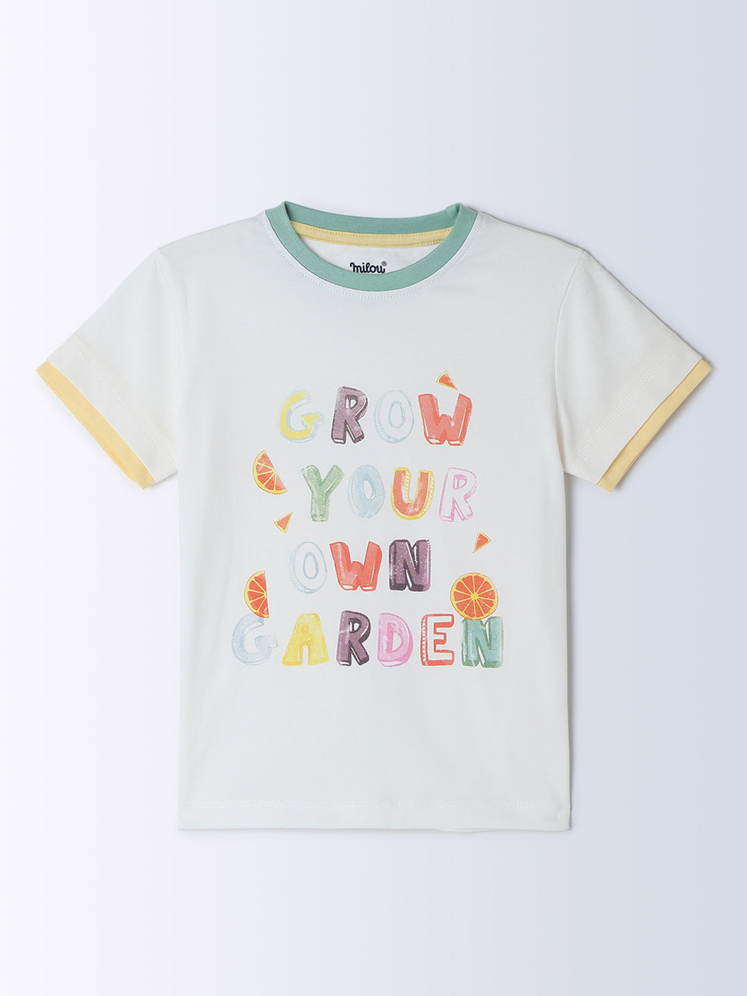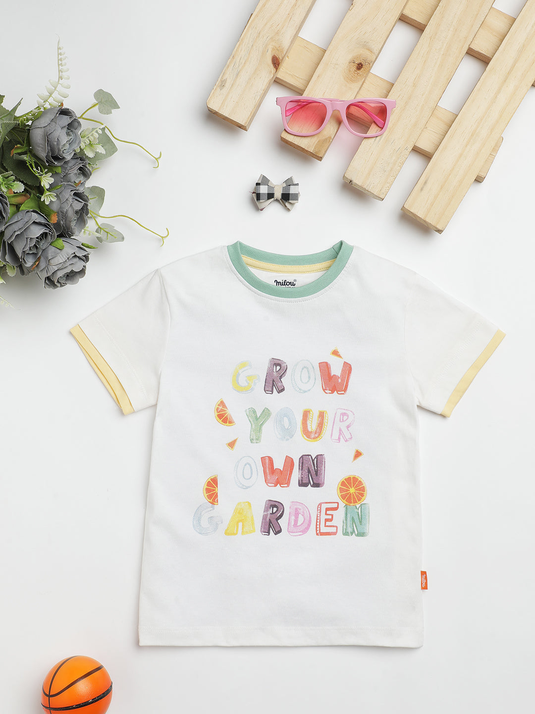 Milou Kids Cotton Half Sleeves Printed Bio Washed T-Shirt for Boys -White