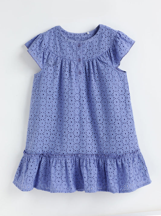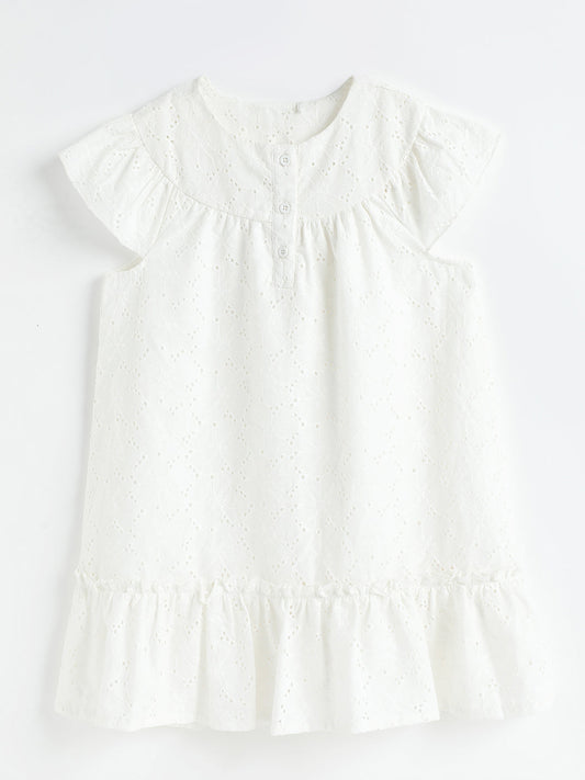 Milou Kids Cotton Bio Washed White Coloured Dress for Girls -White Alyssum