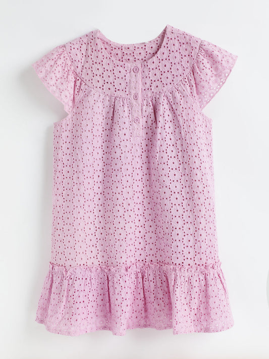 Milou Kids Cotton Printed Bio Washed Girls Dress for Girls -Pink