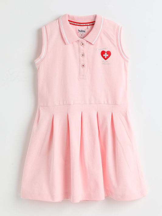 Milou Kids Cotton Short Sleeve Printed Bio Washed Dress for Girls - Pink
