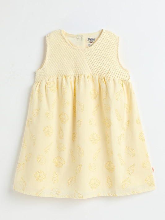 Milou Kids Cotton Printed Bio Washed Sleeveless Dress for Girls -Flax
