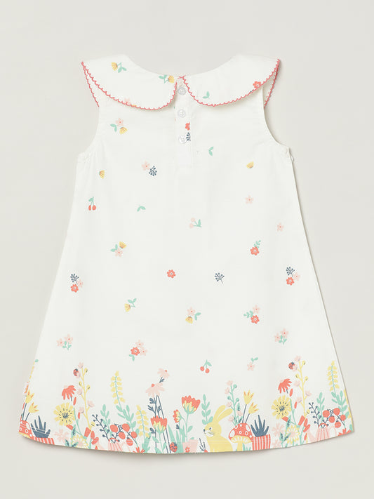 Milou Kids Cotton Printed Bio Washed Dress for Girls -White