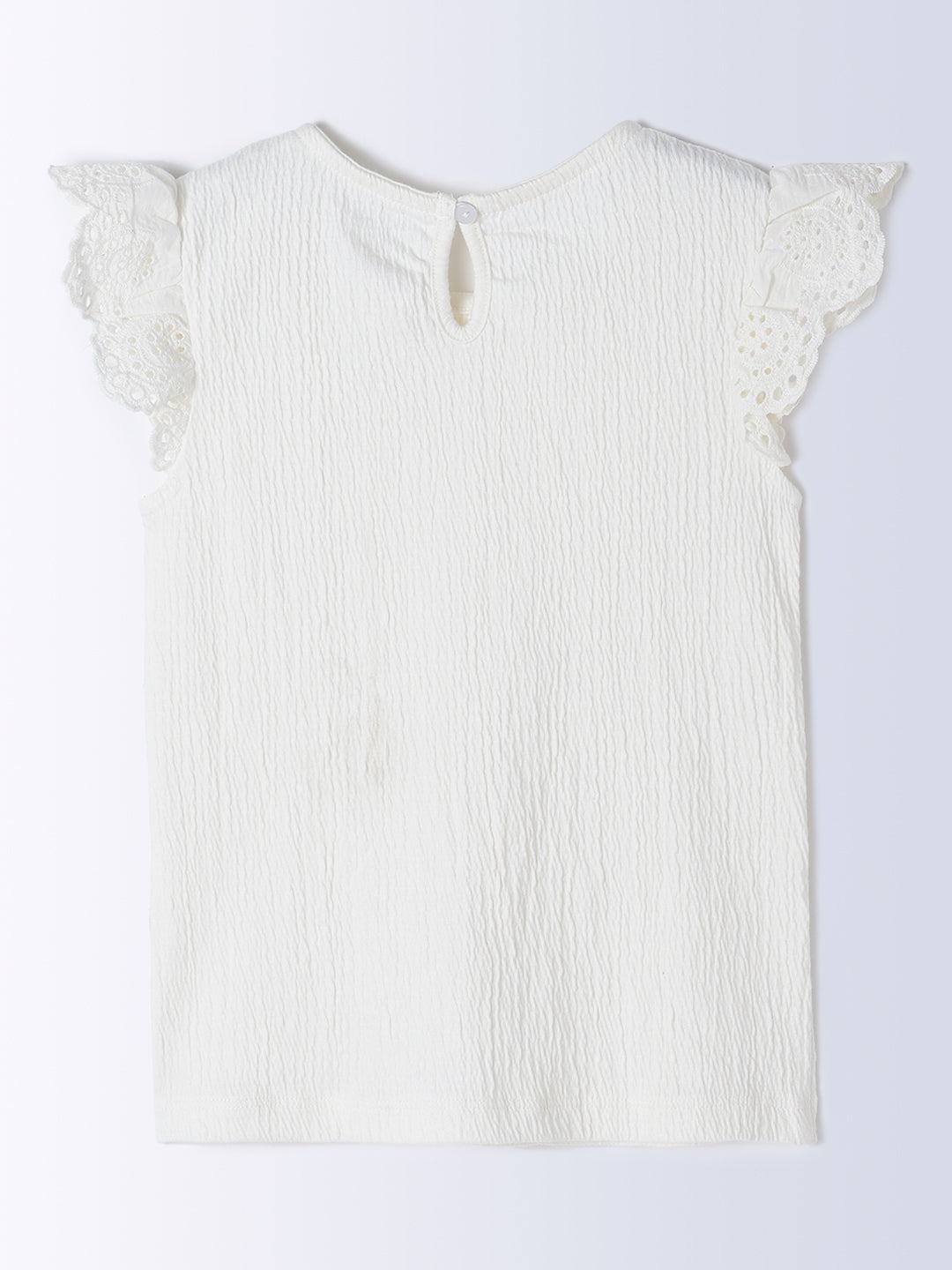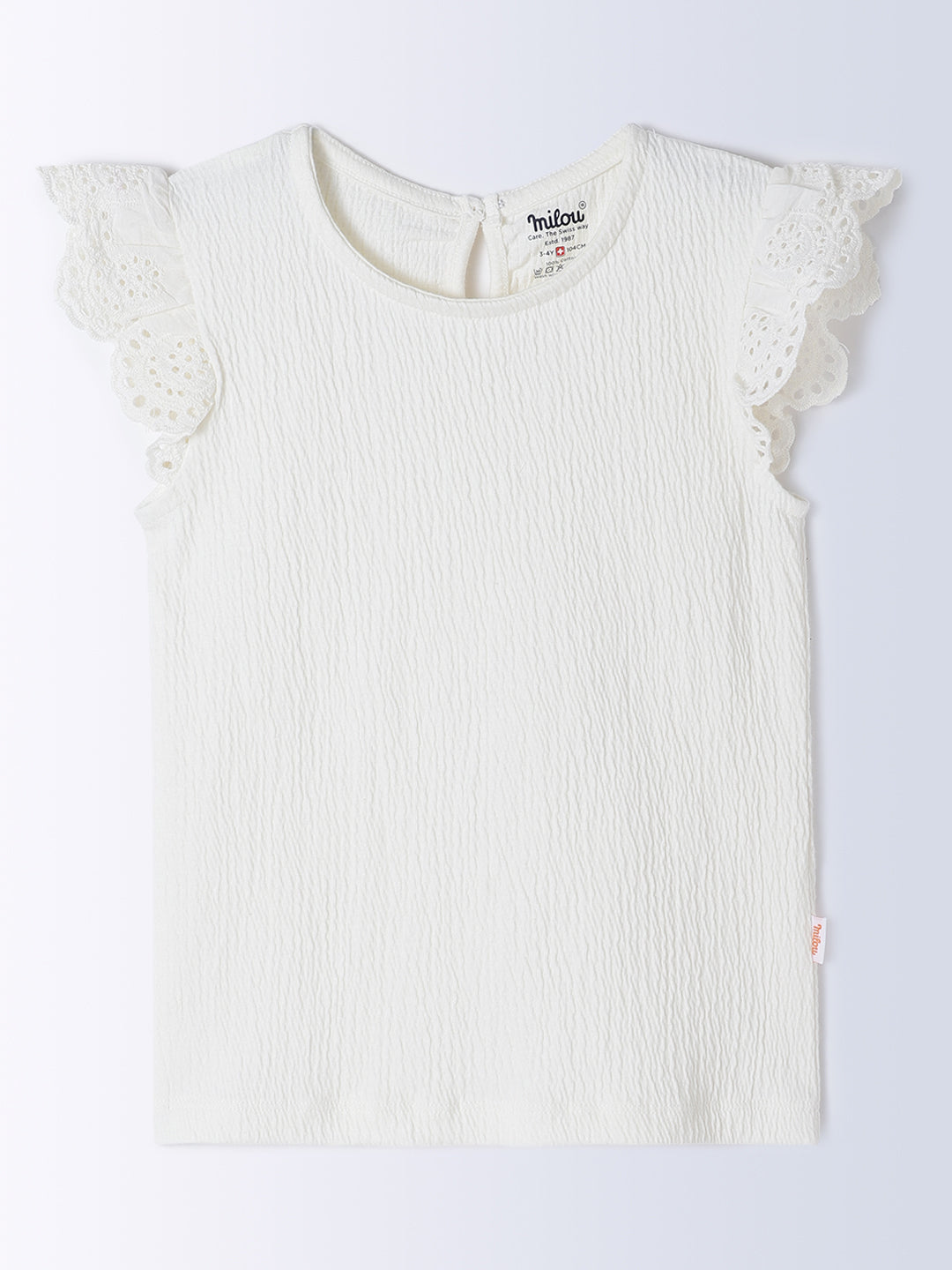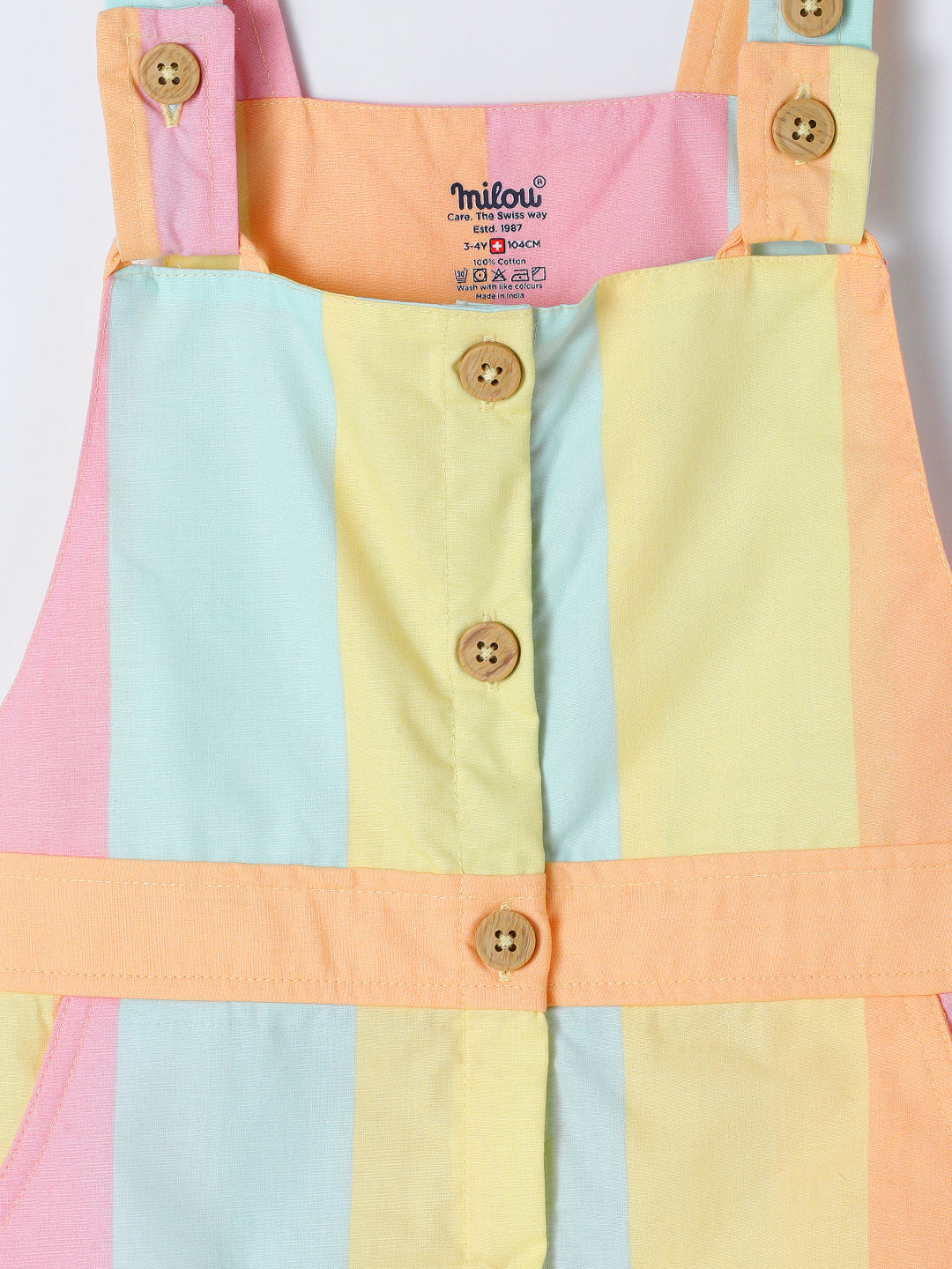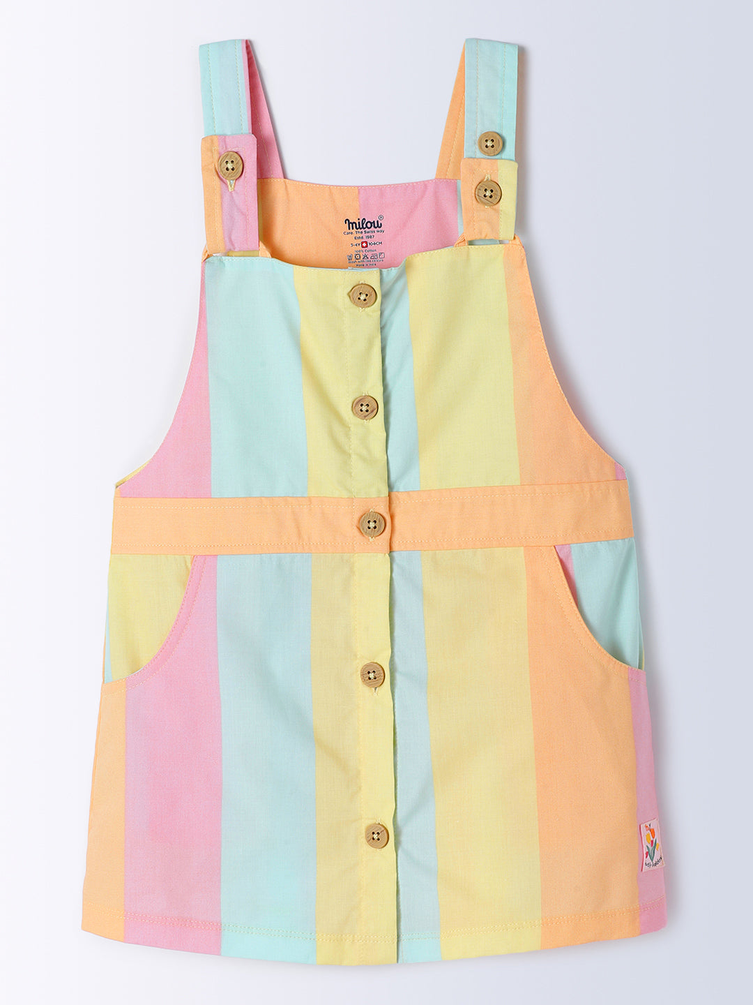 Striped Pinafore with white ruffled top set. Crafted with the soft 100% Cotton fabric, treated with bio wash, to ensure the safest and most comfortable clothing for the young ones.