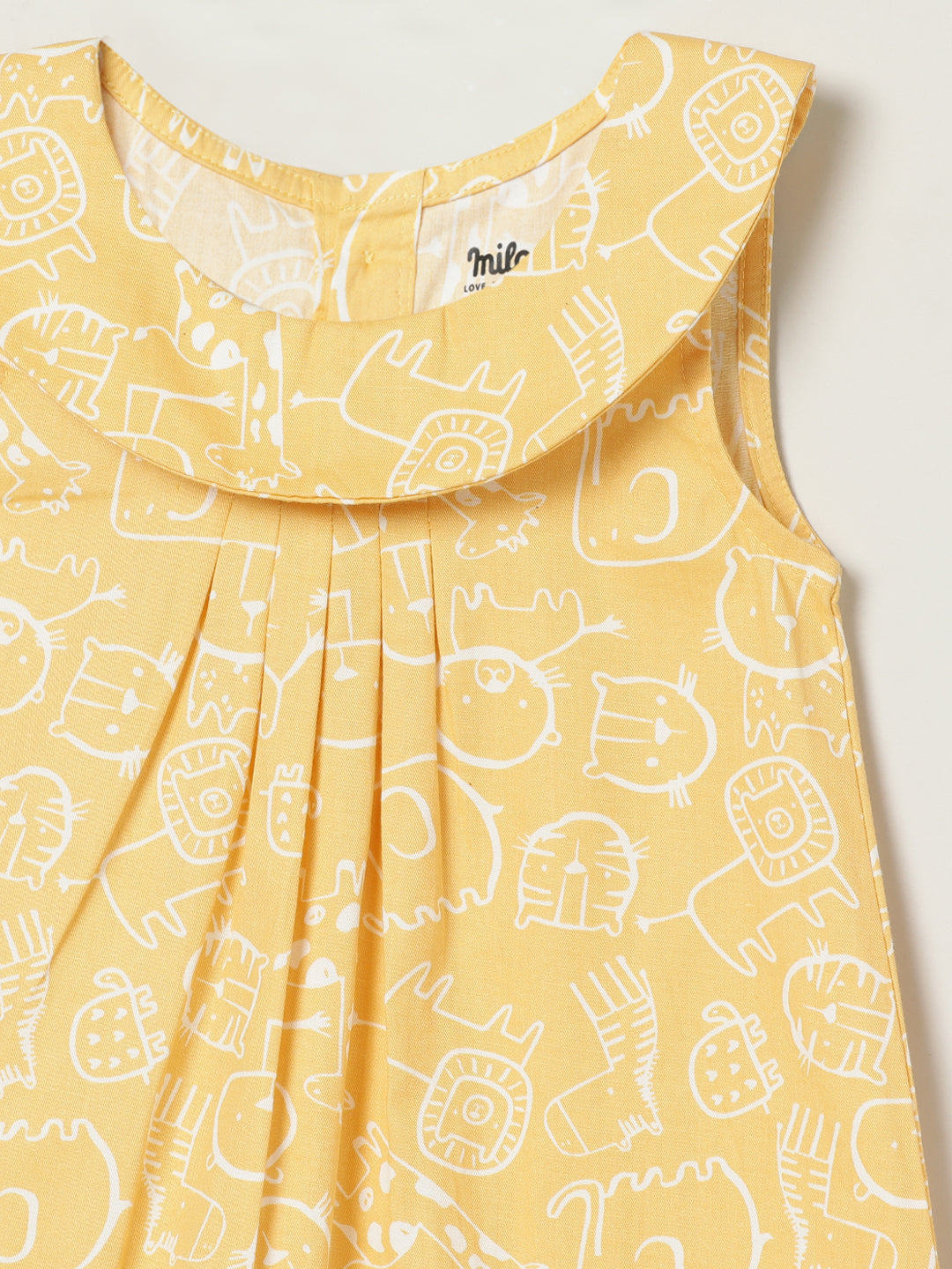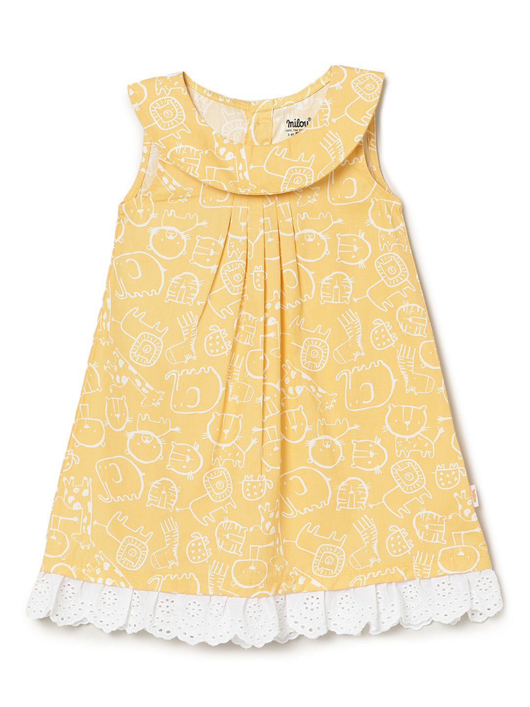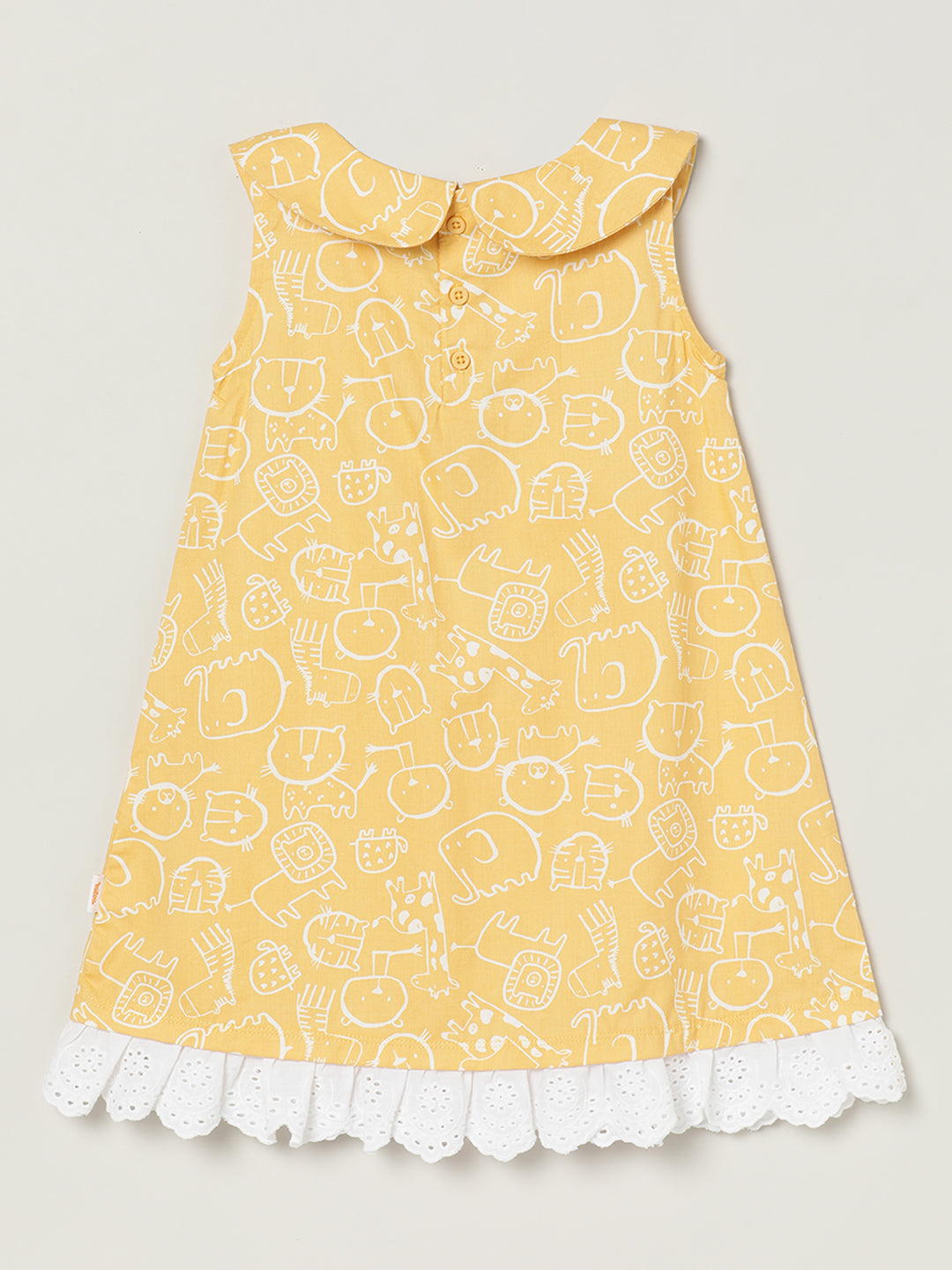 All Over Printed Sleeveless dress. Crafted with the soft 100% Cotton fabric, treated with bio wash, to ensure the safest and most comfortable clothing for the young ones.