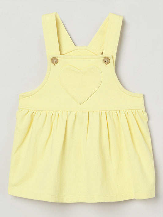 Milou Kids Cotton Bio Washed Self- Designed Pinafore Set for Girls -White & Yellow