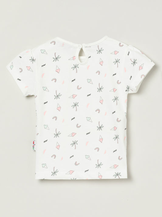 Milou Kids Cotton Bio Washed Printed Tshirt for Girls - White