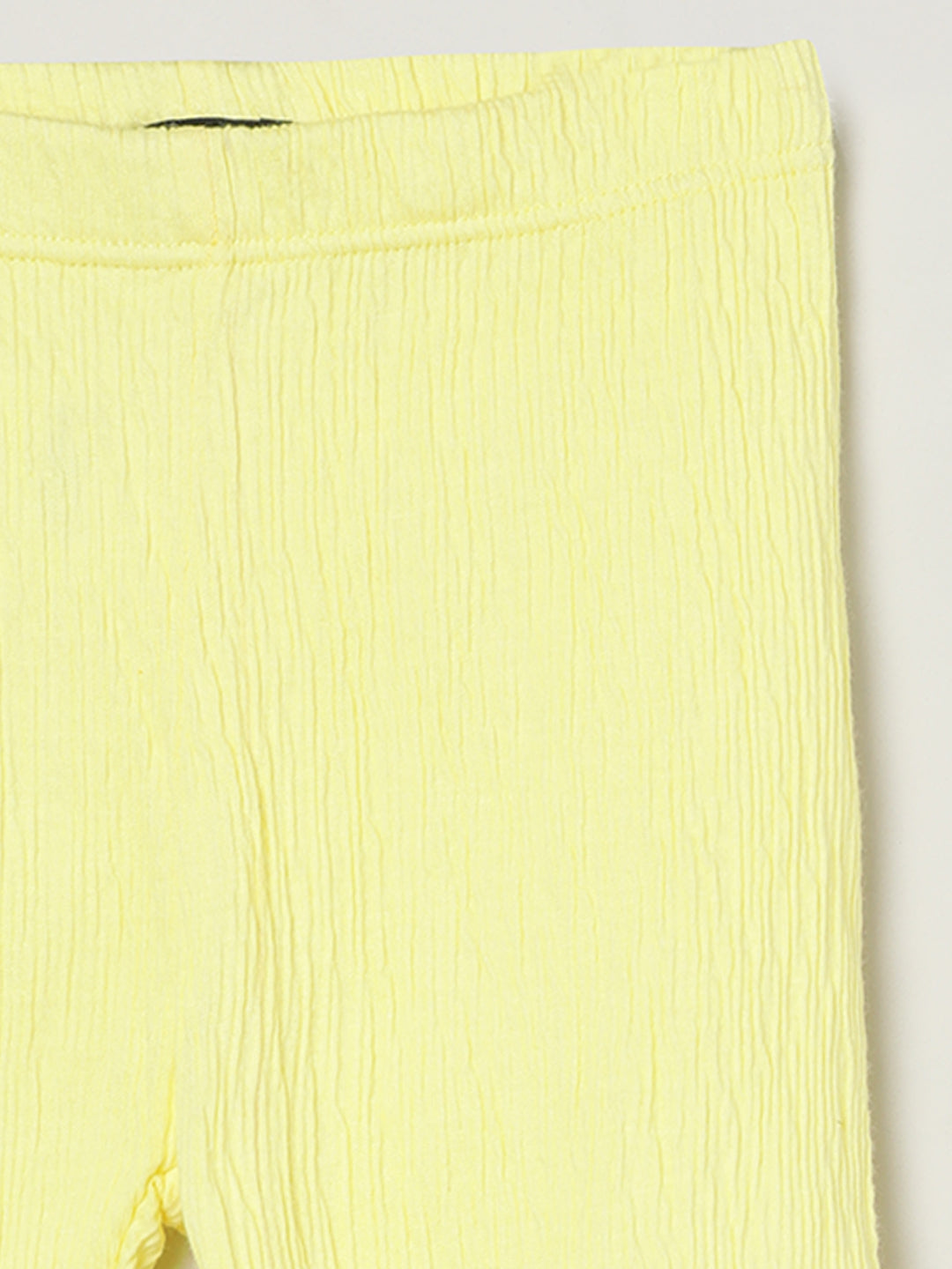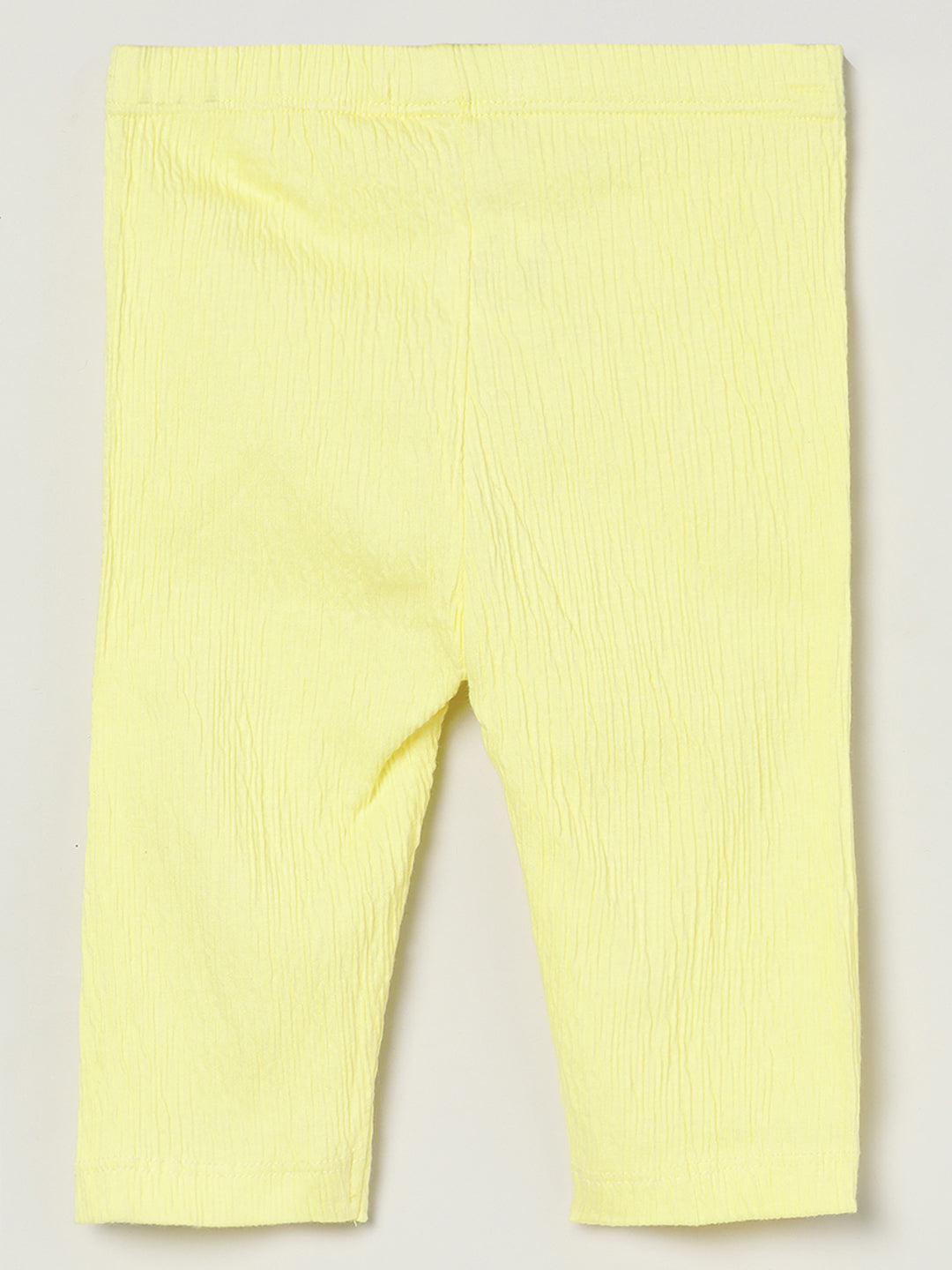 Solid colored leggings in textured fabric. Crafted with the soft 100% Cotton fabric, treated with bio wash, to ensure the safest and most comfortable clothing for the young ones.