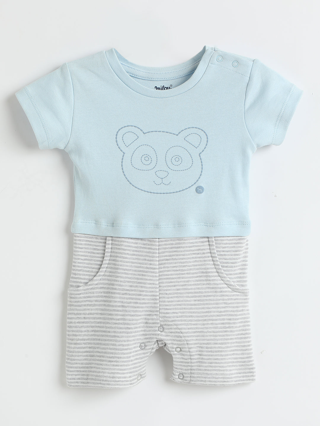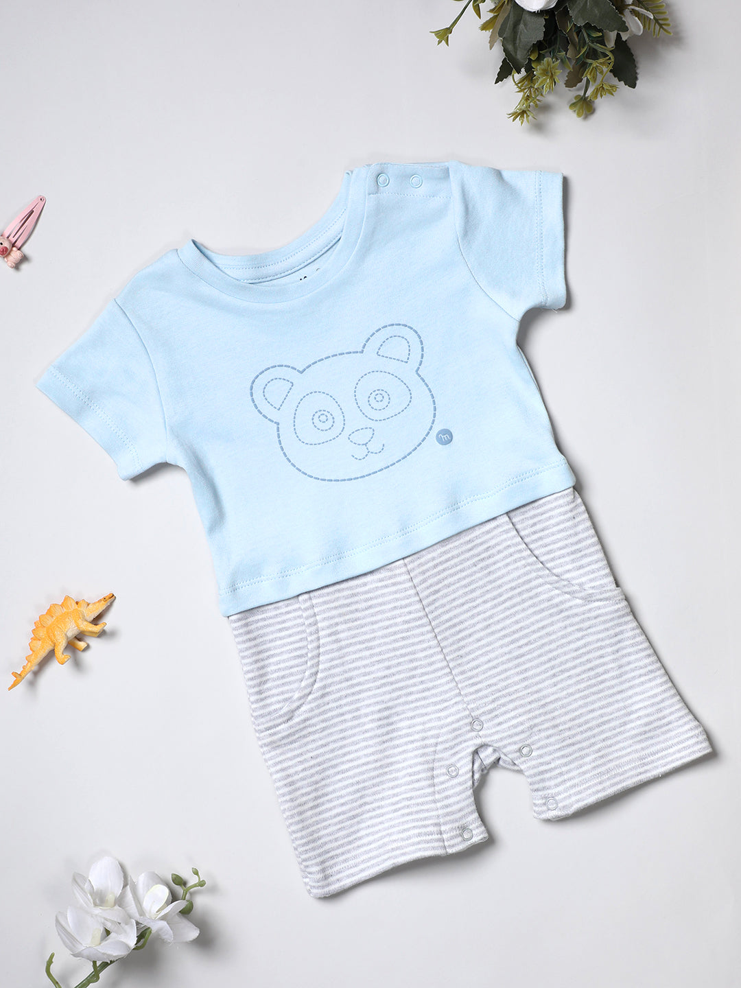 Knitted Romper with buttoned opening at chest. Crafted with the soft 100% Cotton fabric, treated with bio wash, to ensure the safest and most comfortable clothing for the young ones.