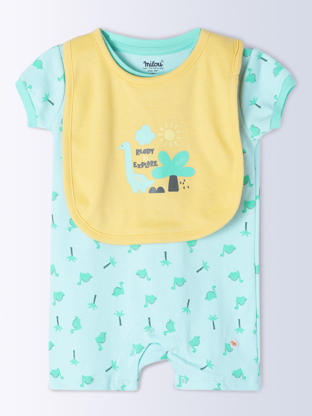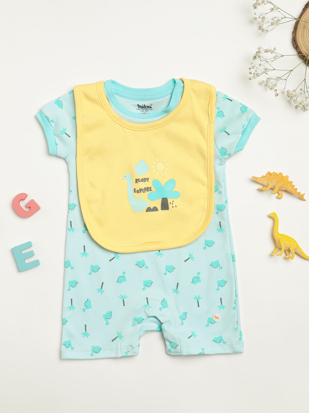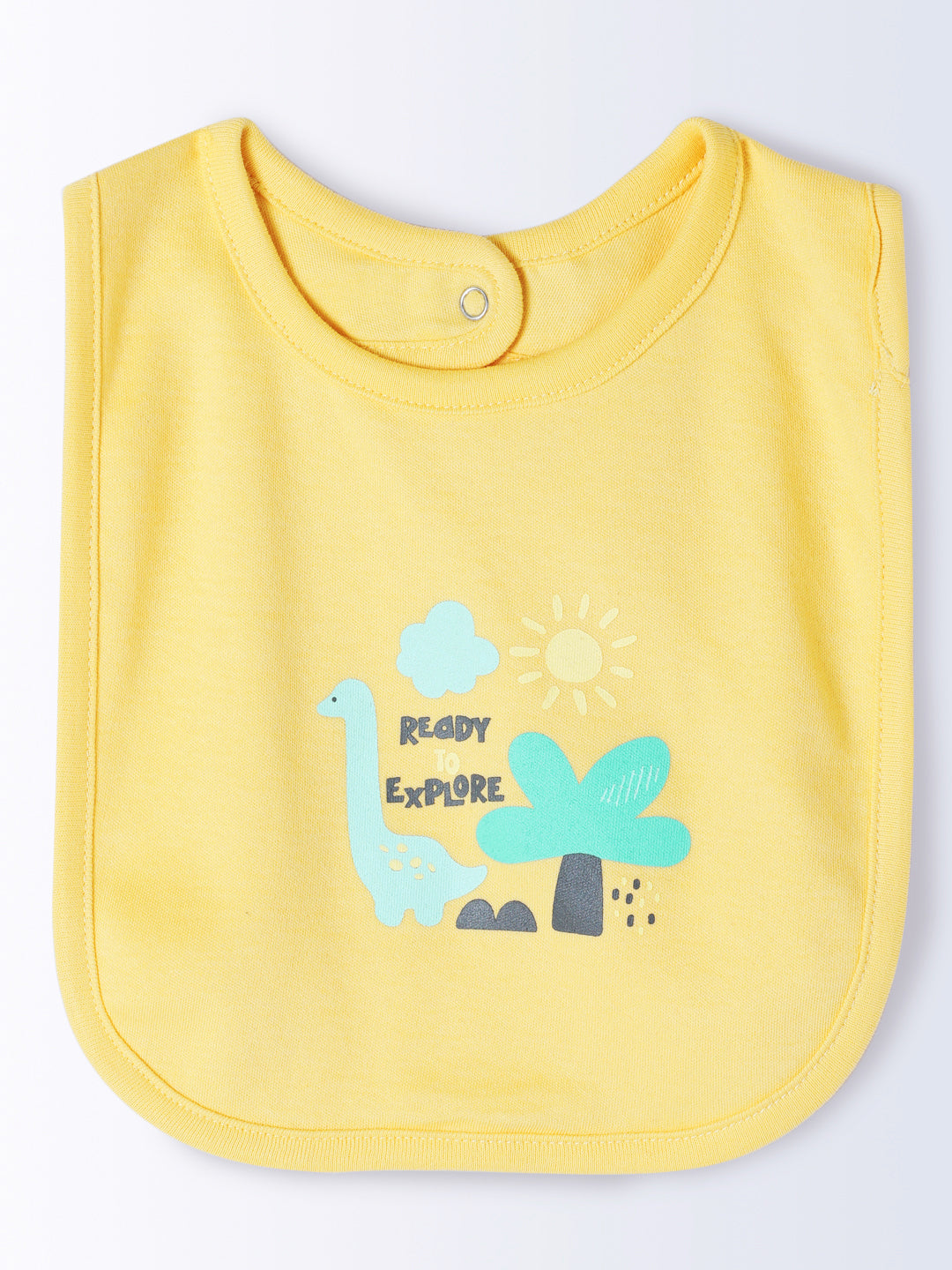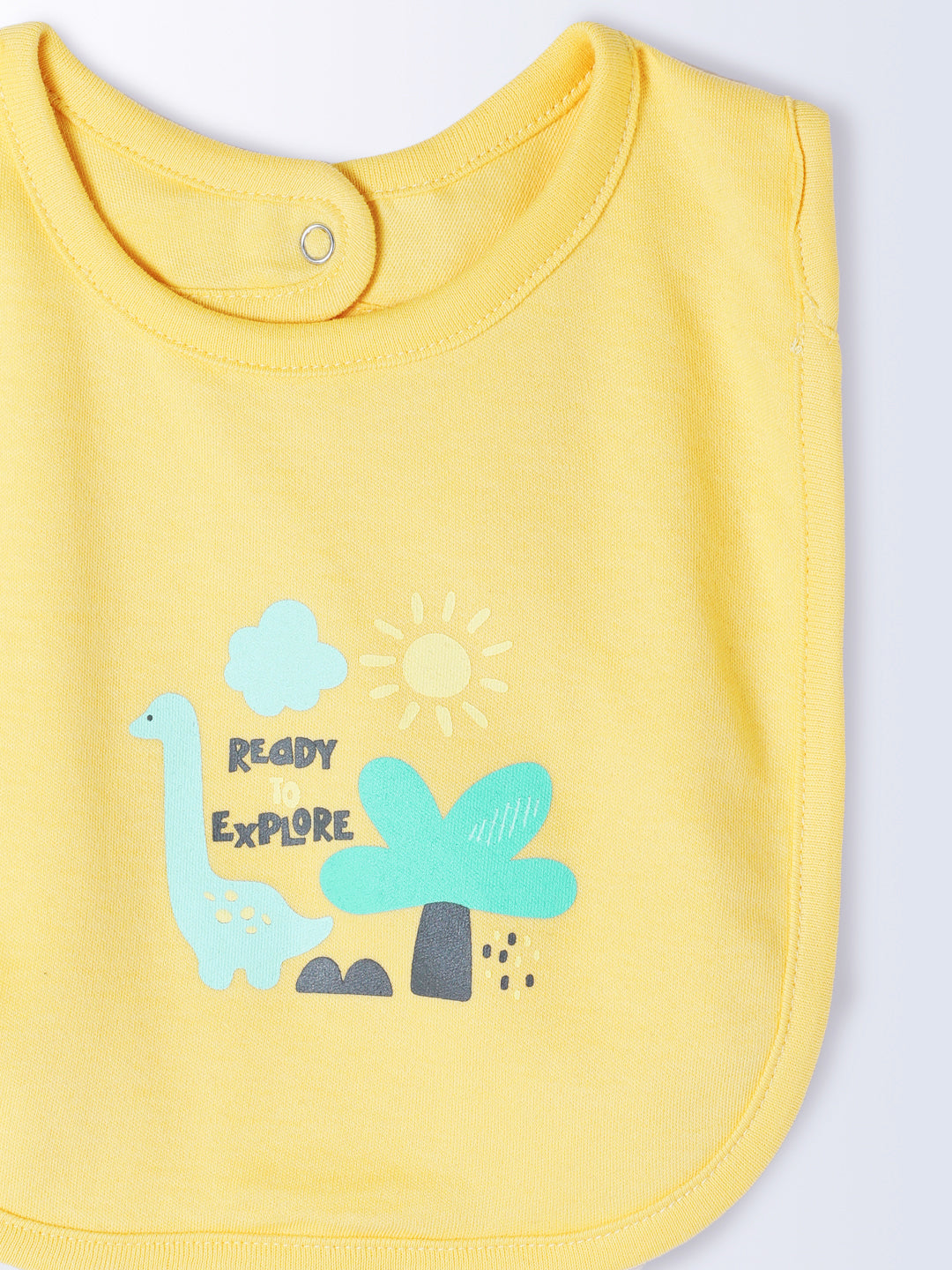Knitted Romper with detailing at chest and coordinated Bib set. Crafted with the soft 100% Cotton fabric, treated with bio wash, to ensure the safest and most comfortable clothing for the young ones.