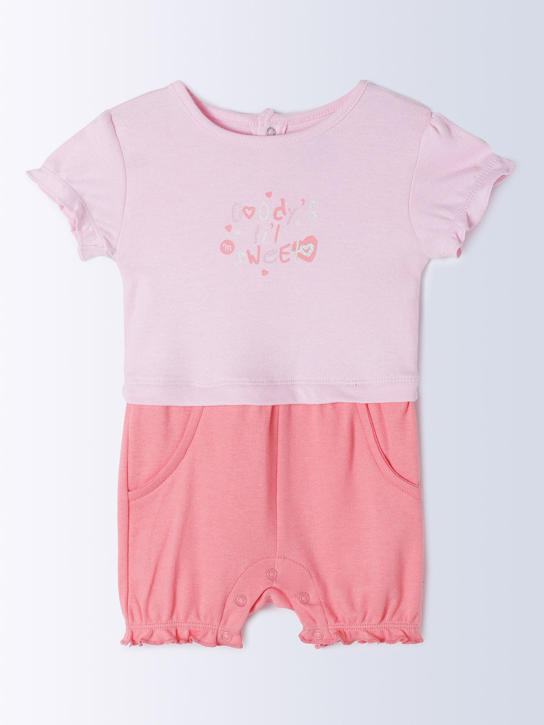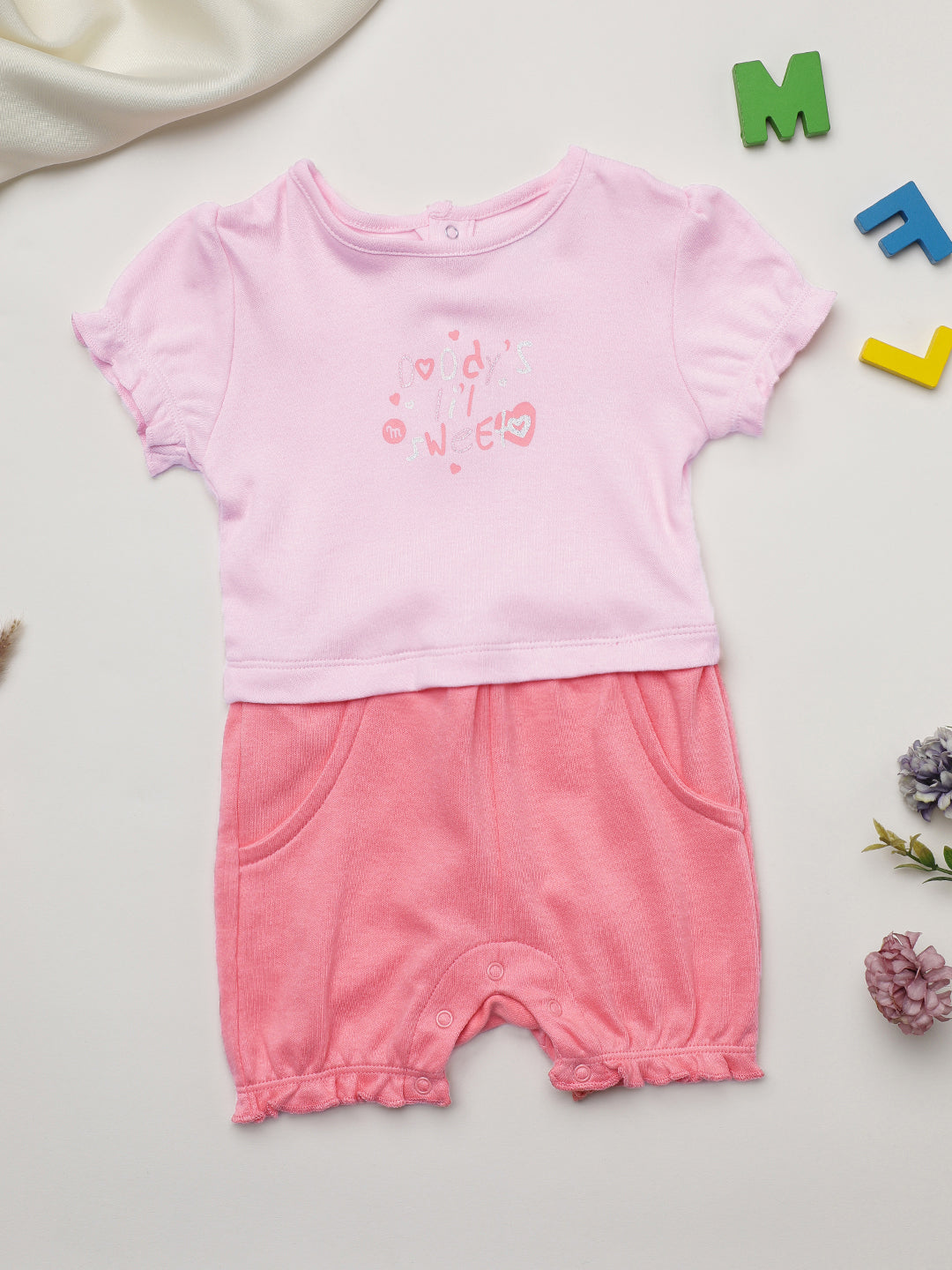Knitted Romper with detailing at chest. Crafted with the soft 100% Cotton fabric, treated with bio wash, to ensure the safest and most comfortable clothing for the young ones.