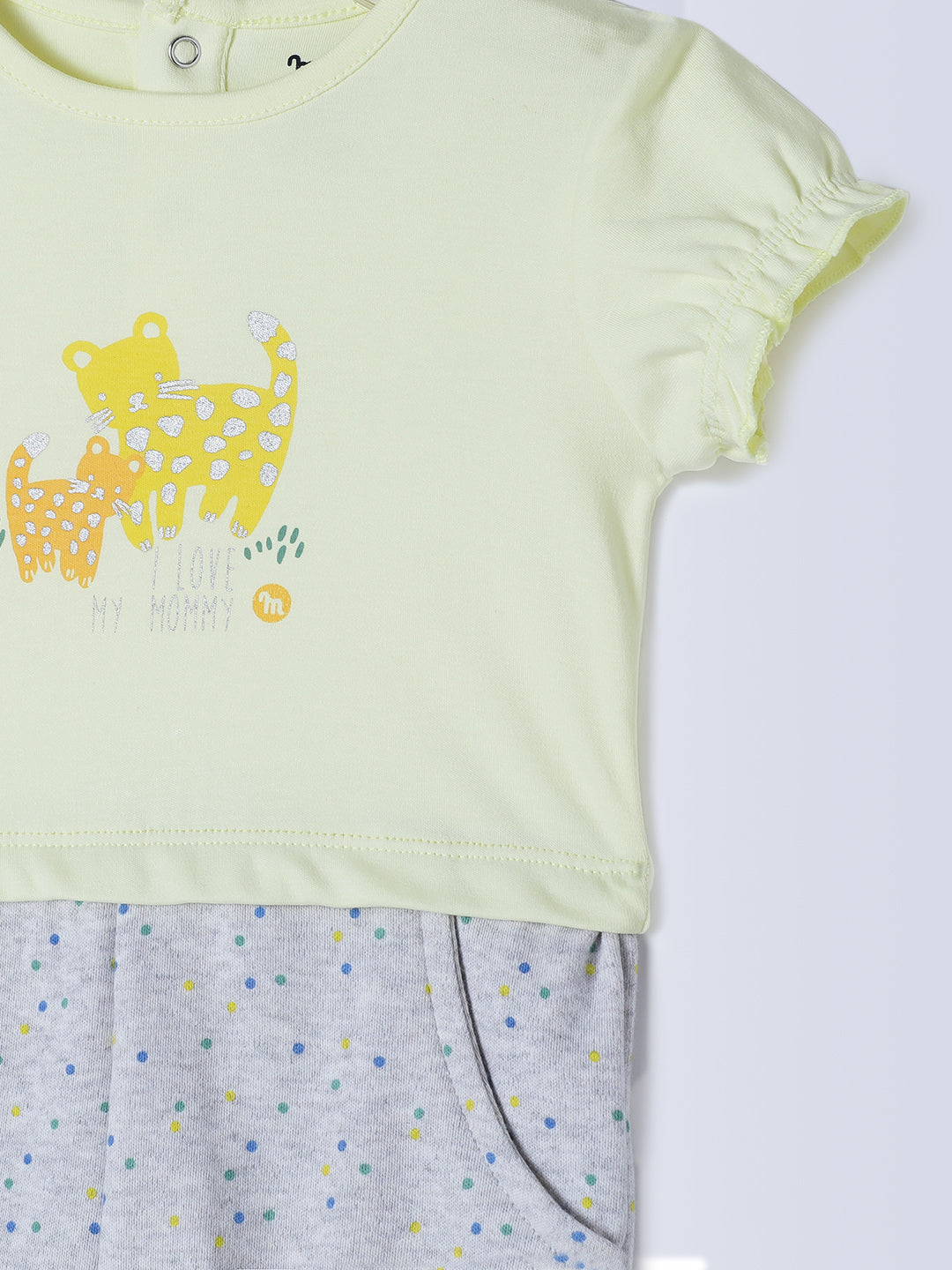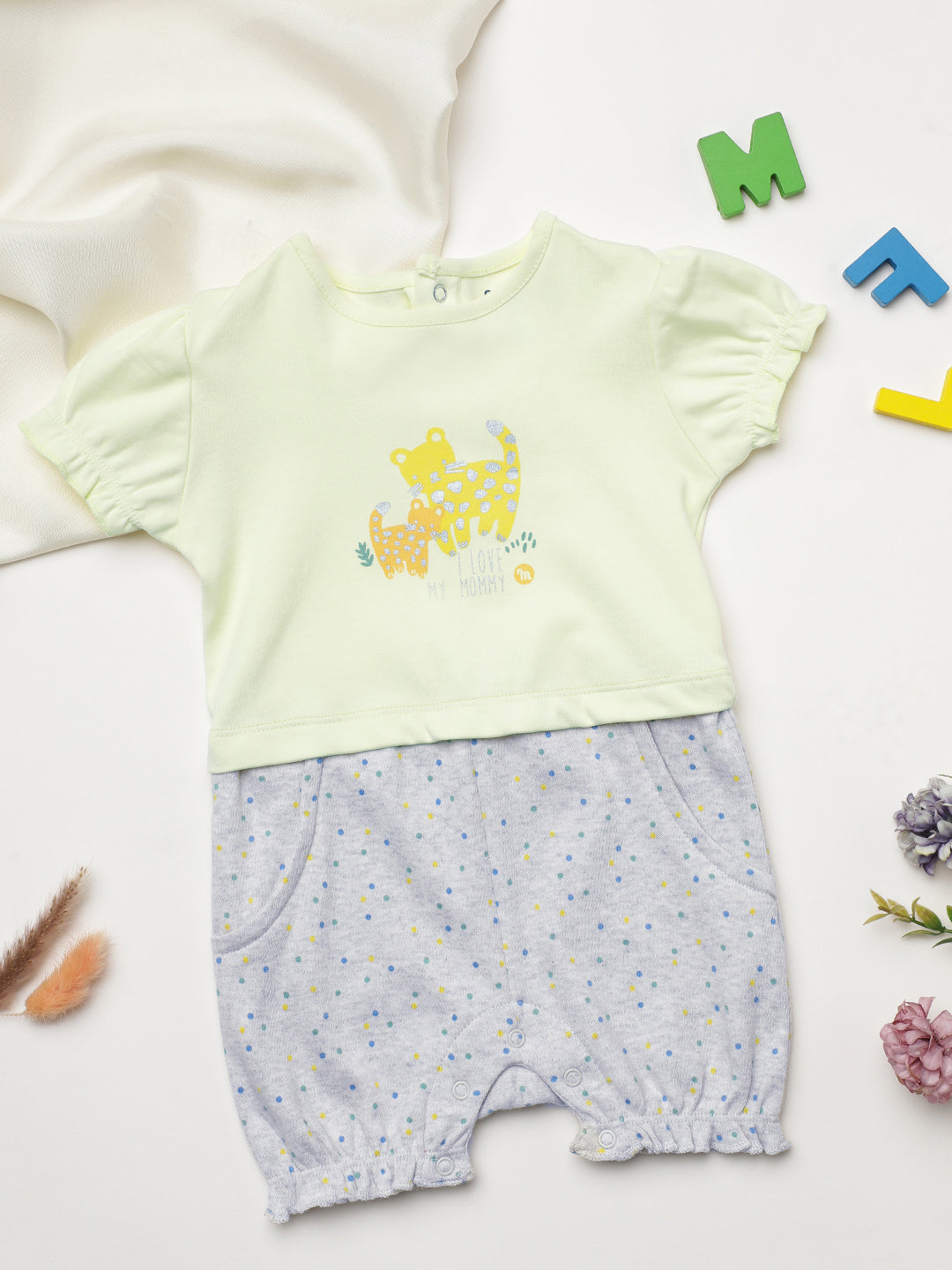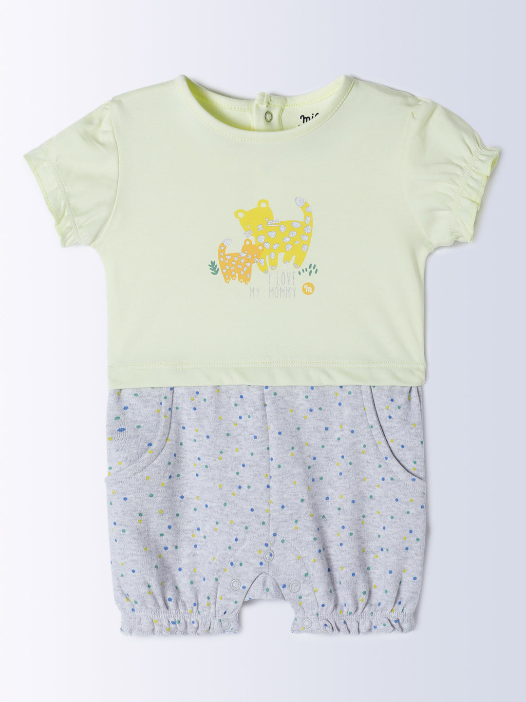 Milou Kids Cotton Bio Washed Printed Romper for Girls - Yellow