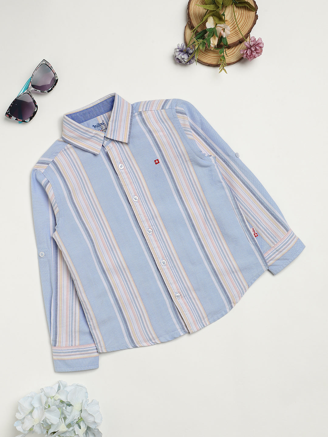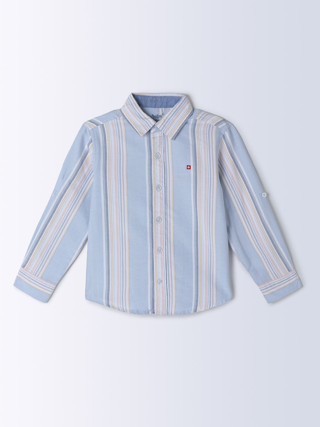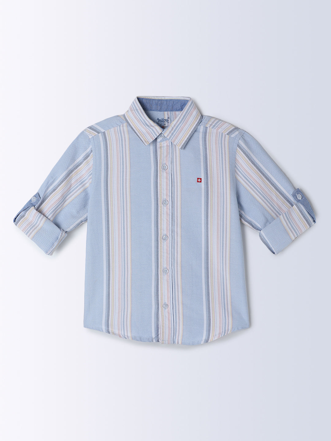 Woven Full sleeve Shirt. Crafted with the soft 100% Cotton fabric, treated with bio wash, to ensure the safest and most comfortable clothing for the young ones.