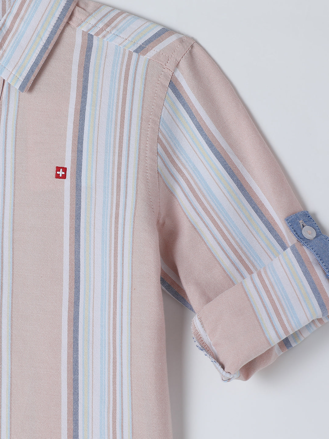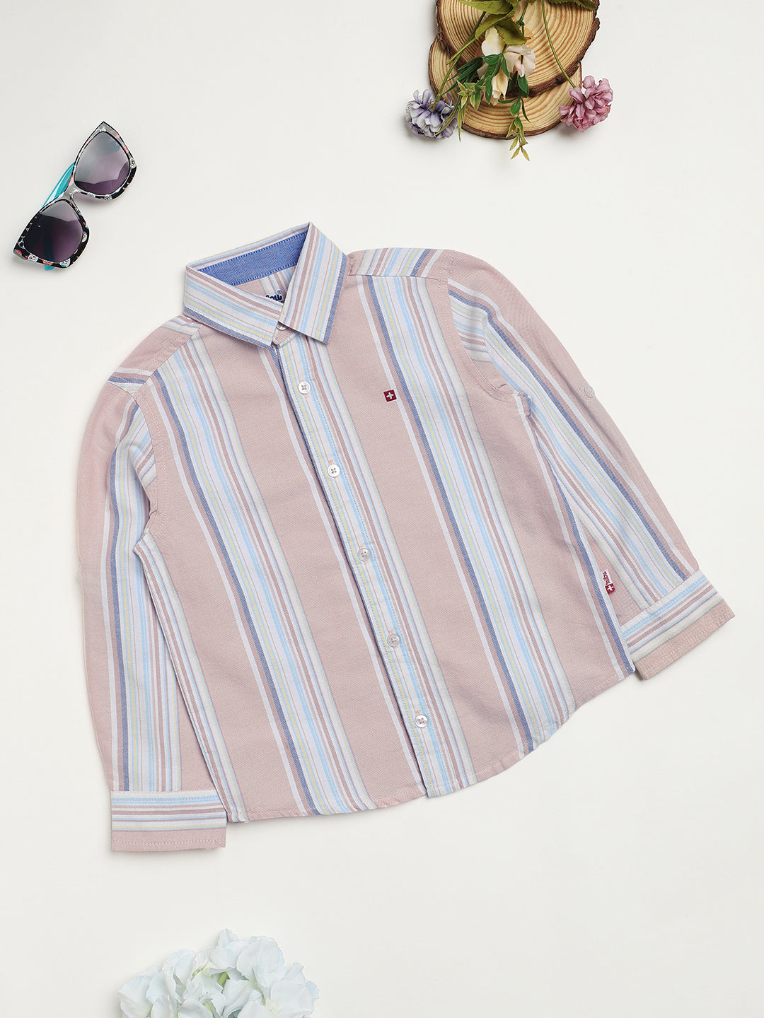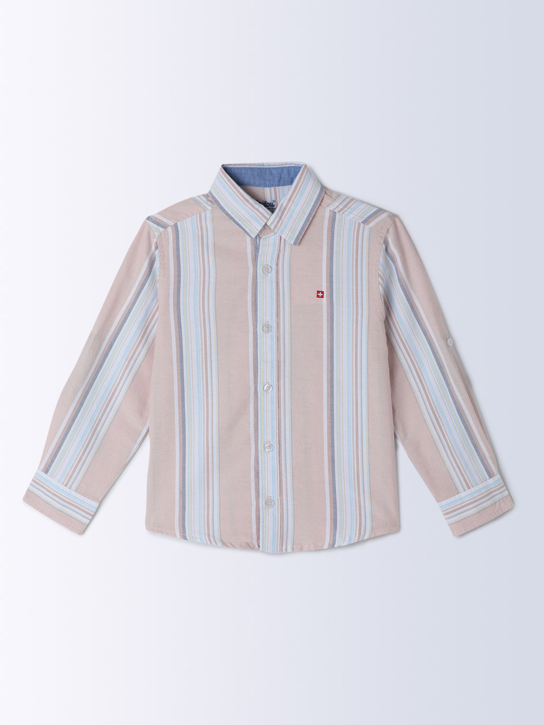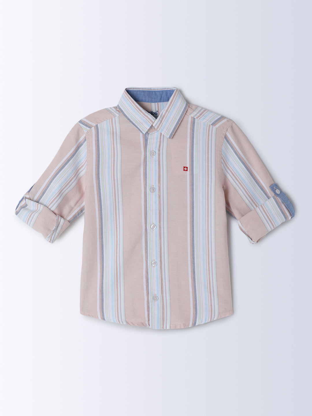 Woven Full sleeve Shirt. Crafted with the soft 100% Cotton fabric, treated with bio wash, to ensure the safest and most comfortable clothing for the young ones.