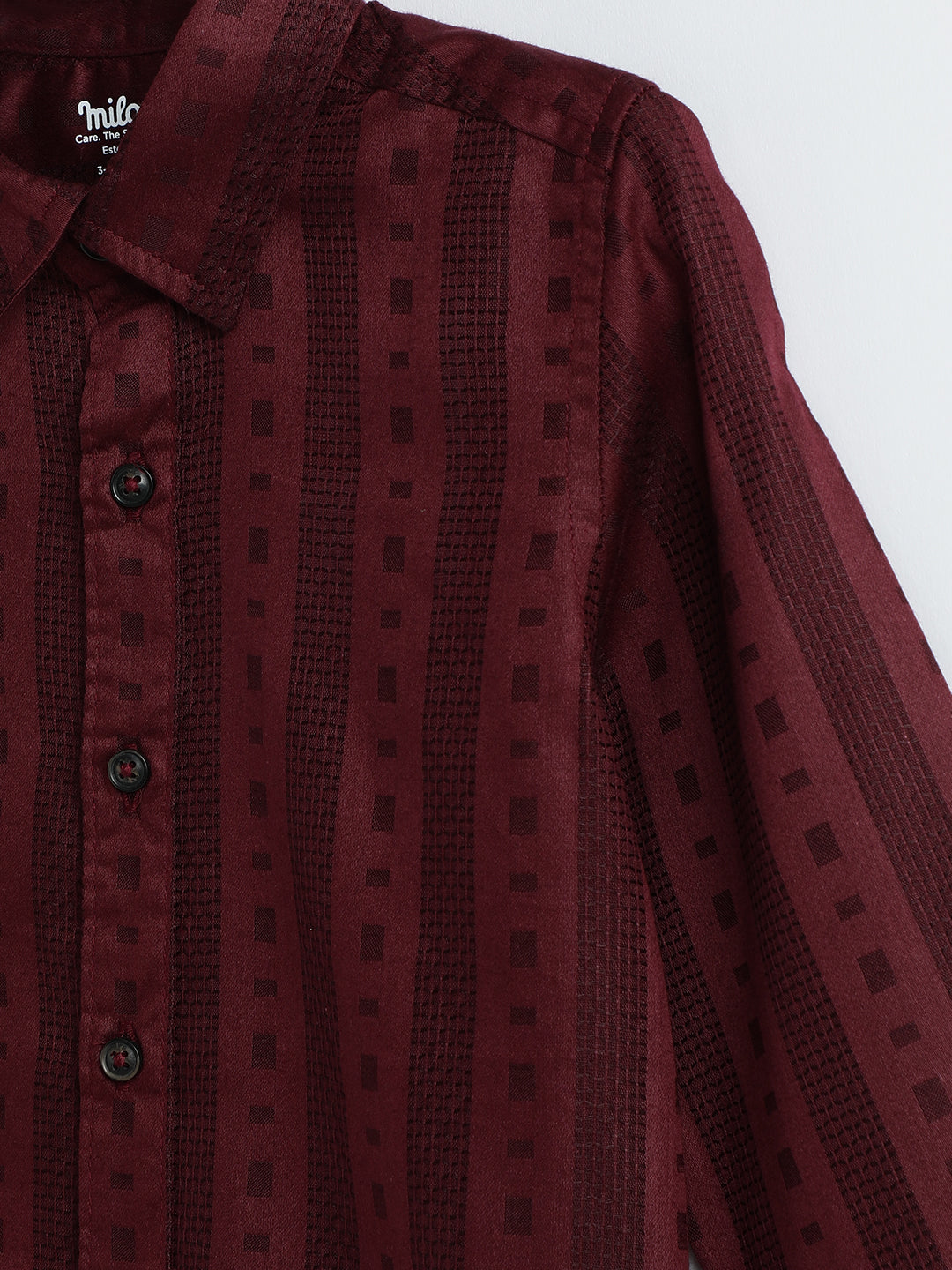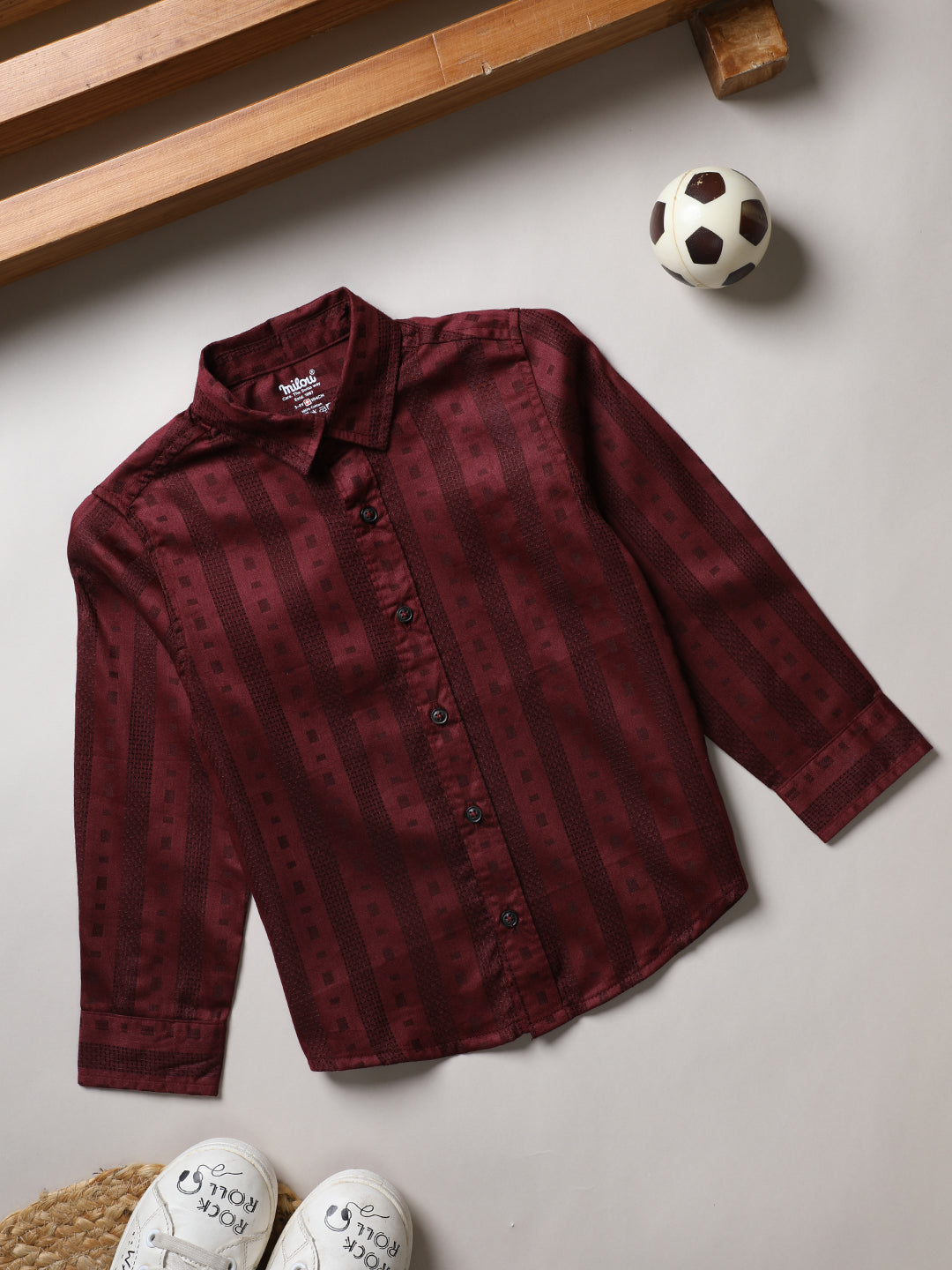Boys' Full sleeve Woven Shirt with stripes. Crafted with the soft 100% Cotton fabric, treated with bio wash, to ensure the safest and most comfortable clothing for the young ones.