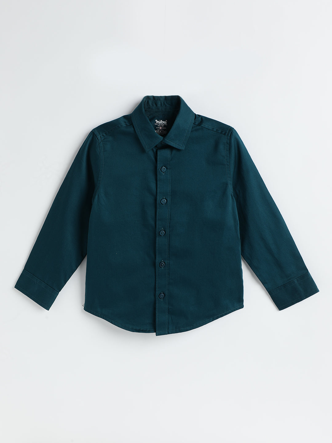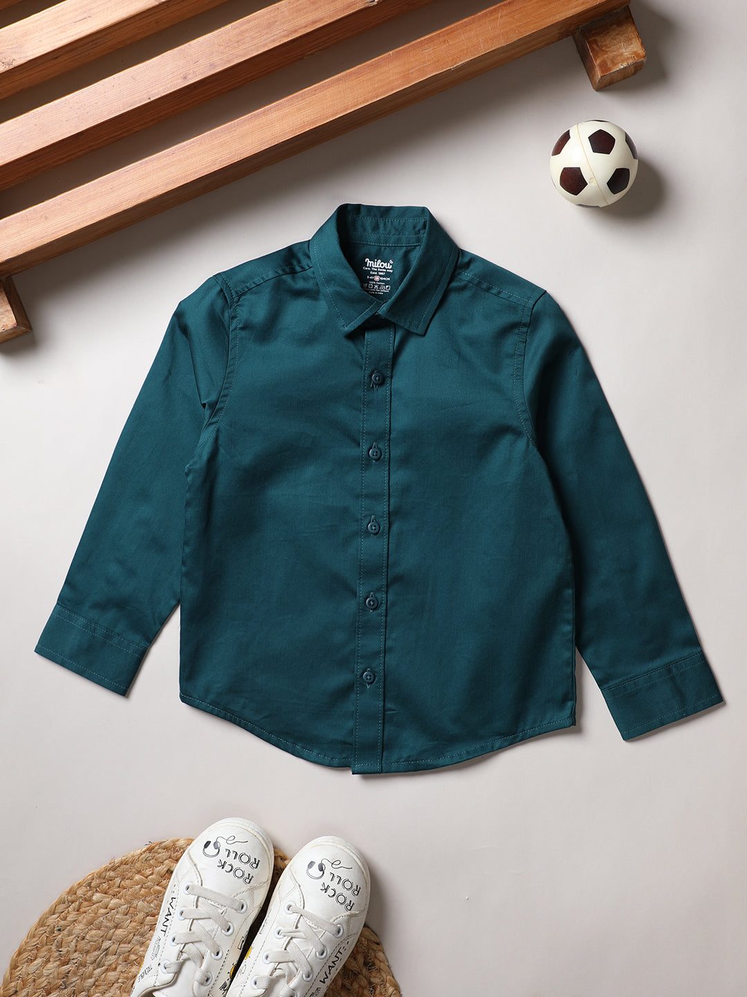 Milou Kids Cotton Full Sleeves Solid Bio Washed Shirt for Boys-SH-RE022-TL