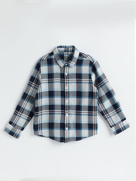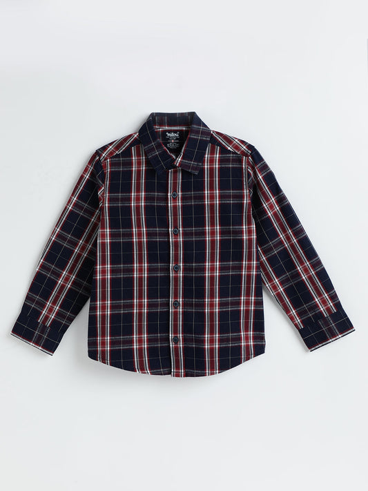 Milou Kids Cotton Full Sleeves Checked Bio Washed Shirt for Boys-SH-RE018-INBL