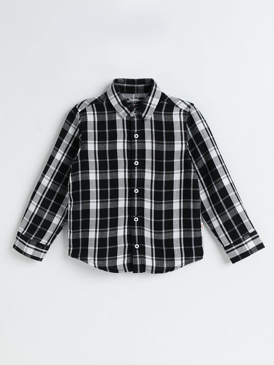 Milou Kids Cotton Full Sleeves Checked Bio Washed Shirt for Boys-SH-RE017-BKWH