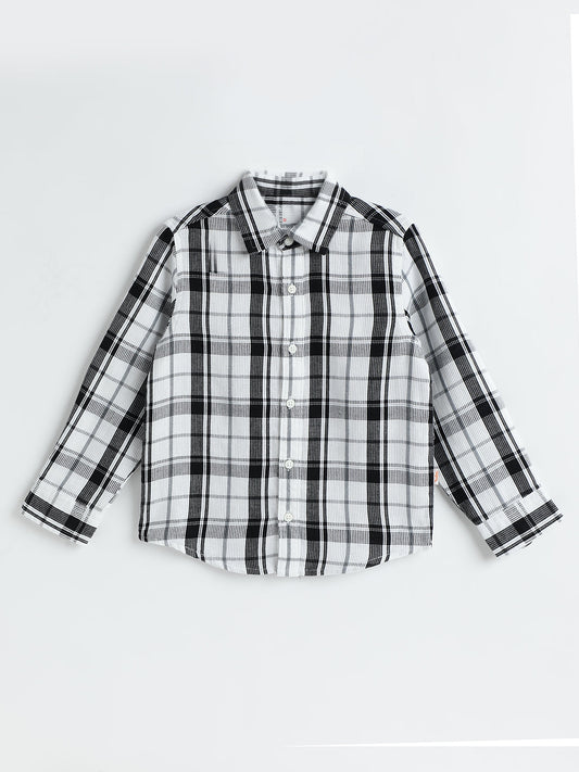 Milou Kids Cotton Full Sleeves Checked Bio Washed Shirt for Boys-SH-RE017-WHBK