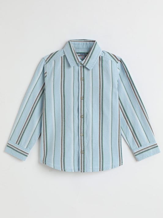 Milou Kids Cotton Full Sleeves Striped Bio Washed Shirt for Boys - Blue