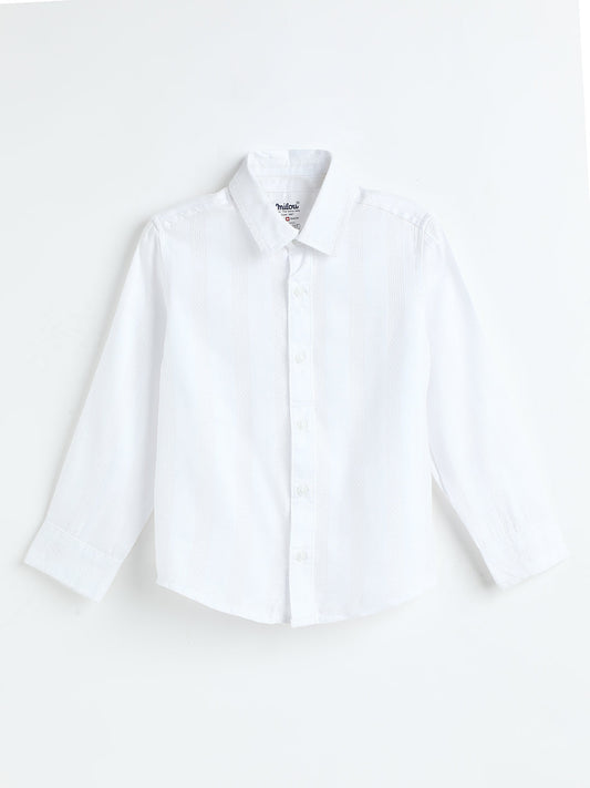Milou Kids Cotton Full Sleeves Striped Bio Washed Shirt for Boys-SH-RE012-WH