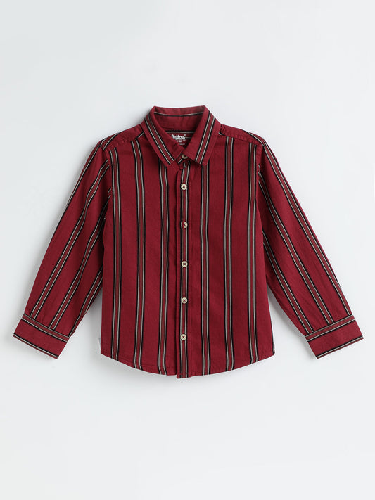 Milou Kids Cotton Full Sleeves Striped Bio Washed Shirt for Boys-SH-RE012-MR