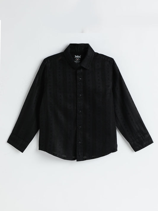 Milou Kids Cotton Full Sleeves Striped Bio Washed Shirt for Boys-SH-RE012-BK