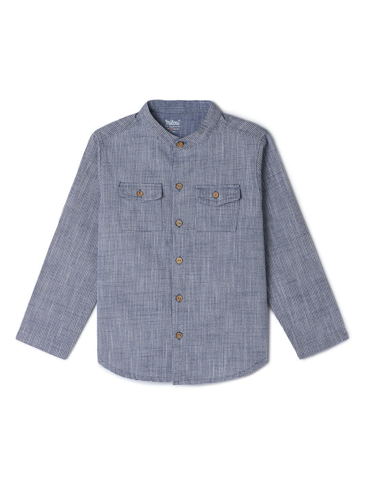 Milou Kids Cotton Full Sleeves Printed Bio Washed Shirt for Boys -Navy Blue