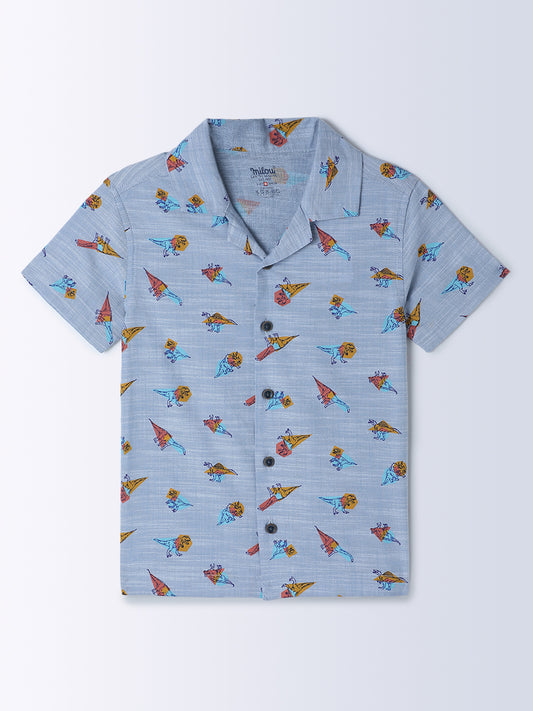 Milou Kids Cotton Half Sleeves All Over Printed Bio Washed Shirt for Boys -Blue
