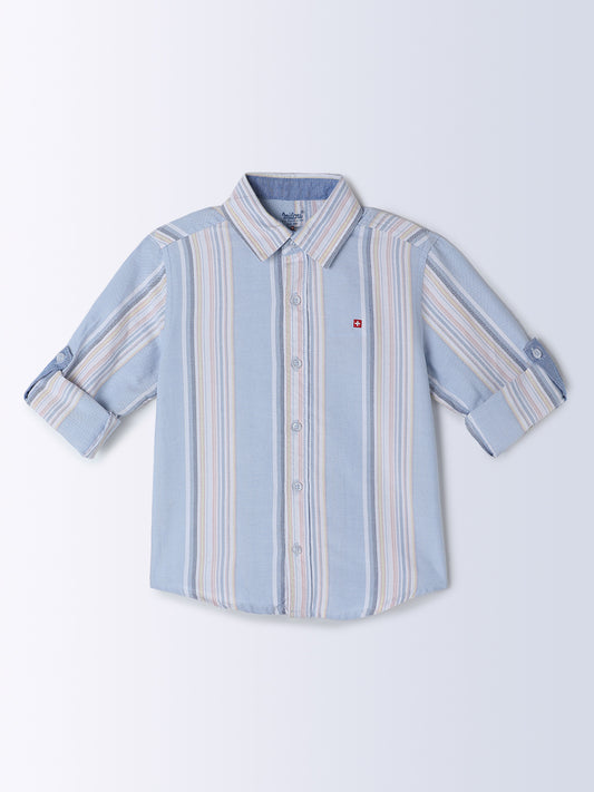 Milou Kids Cotton Full Sleeves Striped Bio Washed Shirt for Boys SH-CU005