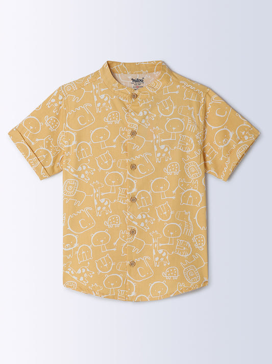 Milou Kids Cotton Half Sleeves All Over Printed Bio Washed Shirt for Boys -Yellow