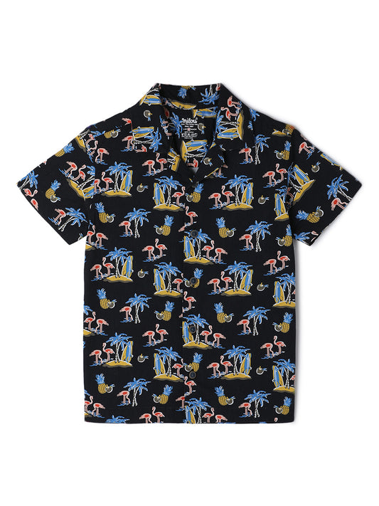 Milou Kids Cotton Half Sleeves All Over Printed Resort Collar Bio Washed Shirt for Boys SH-CU002