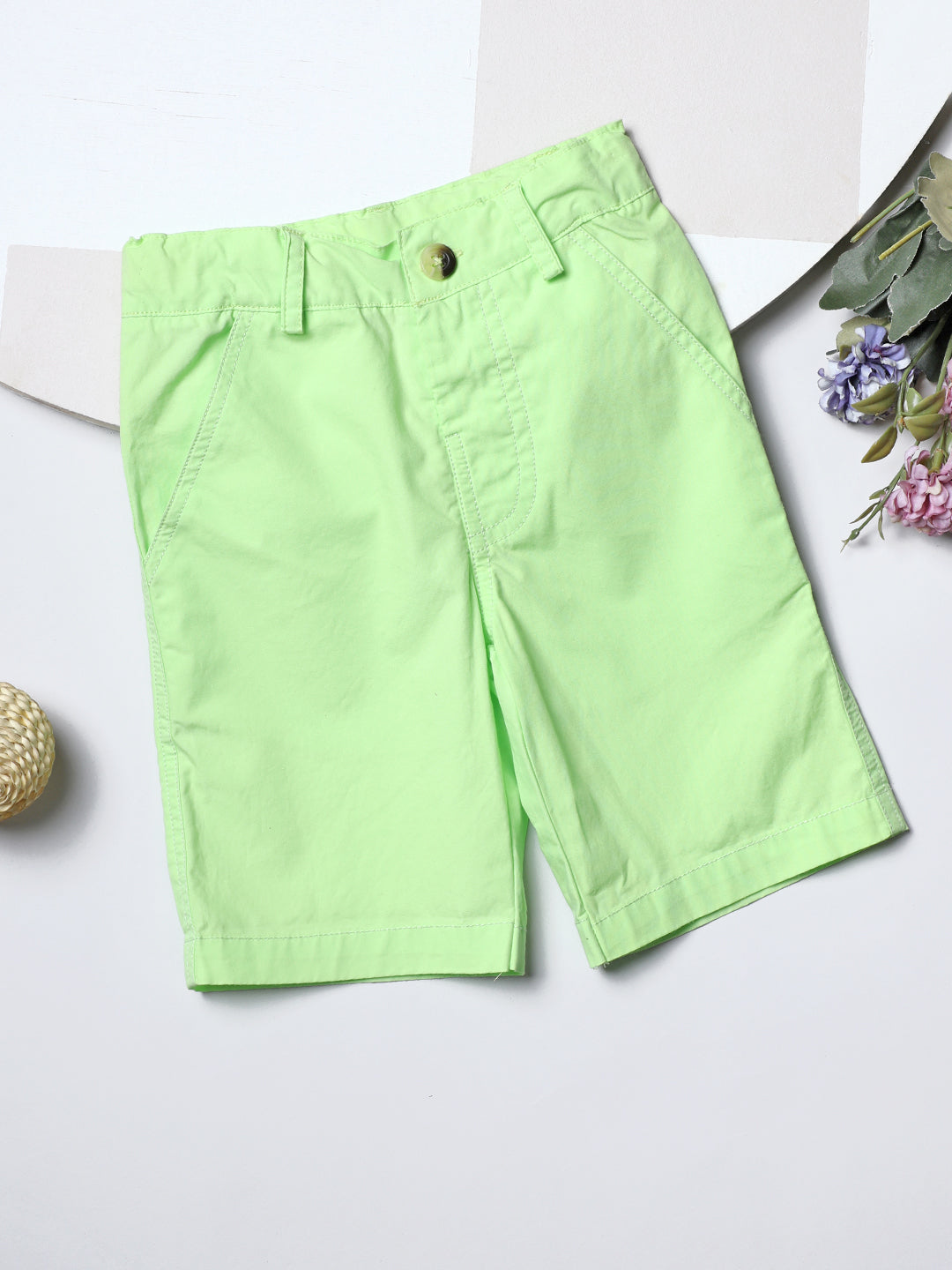 Woven Shorts with dual side pockets and patch branding at bottom. Crafted with the soft 100% Cotton fabric, treated with bio wash, to ensure the safest and most comfortable clothing for the young ones.