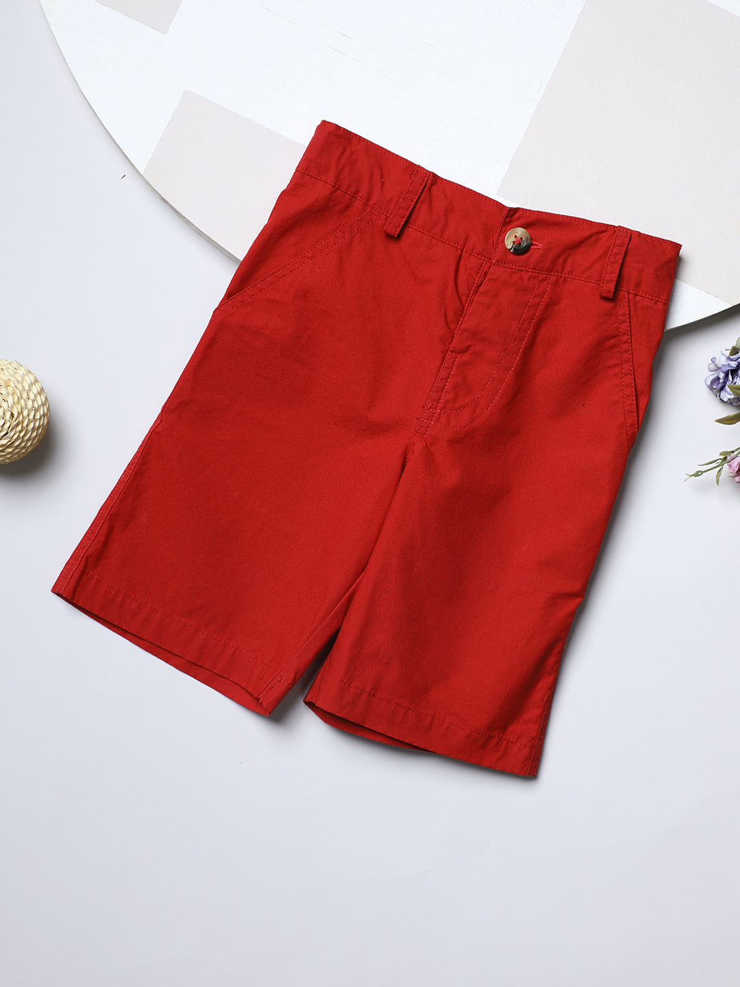 Woven Shorts with dual side pockets and patch branding at bottom. Crafted with the soft 100% Cotton fabric, treated with bio wash, to ensure the safest and most comfortable clothing for the young ones.