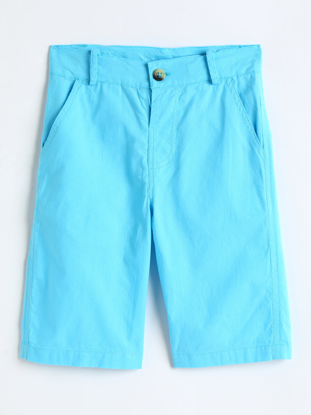Woven Shorts with dual side pockets and patch branding at bottom. Crafted with the soft 100% Cotton fabric, treated with bio wash, to ensure the safest and most comfortable clothing for the young ones.