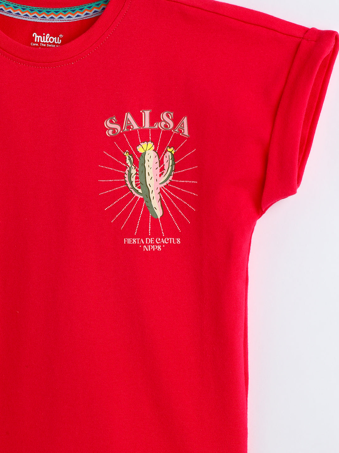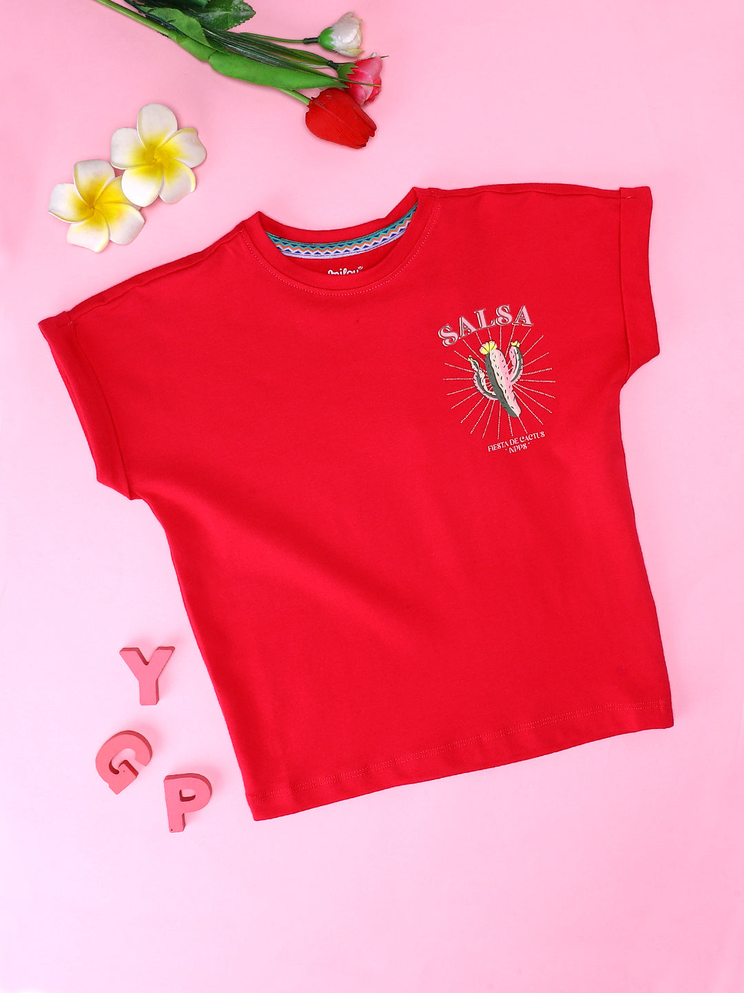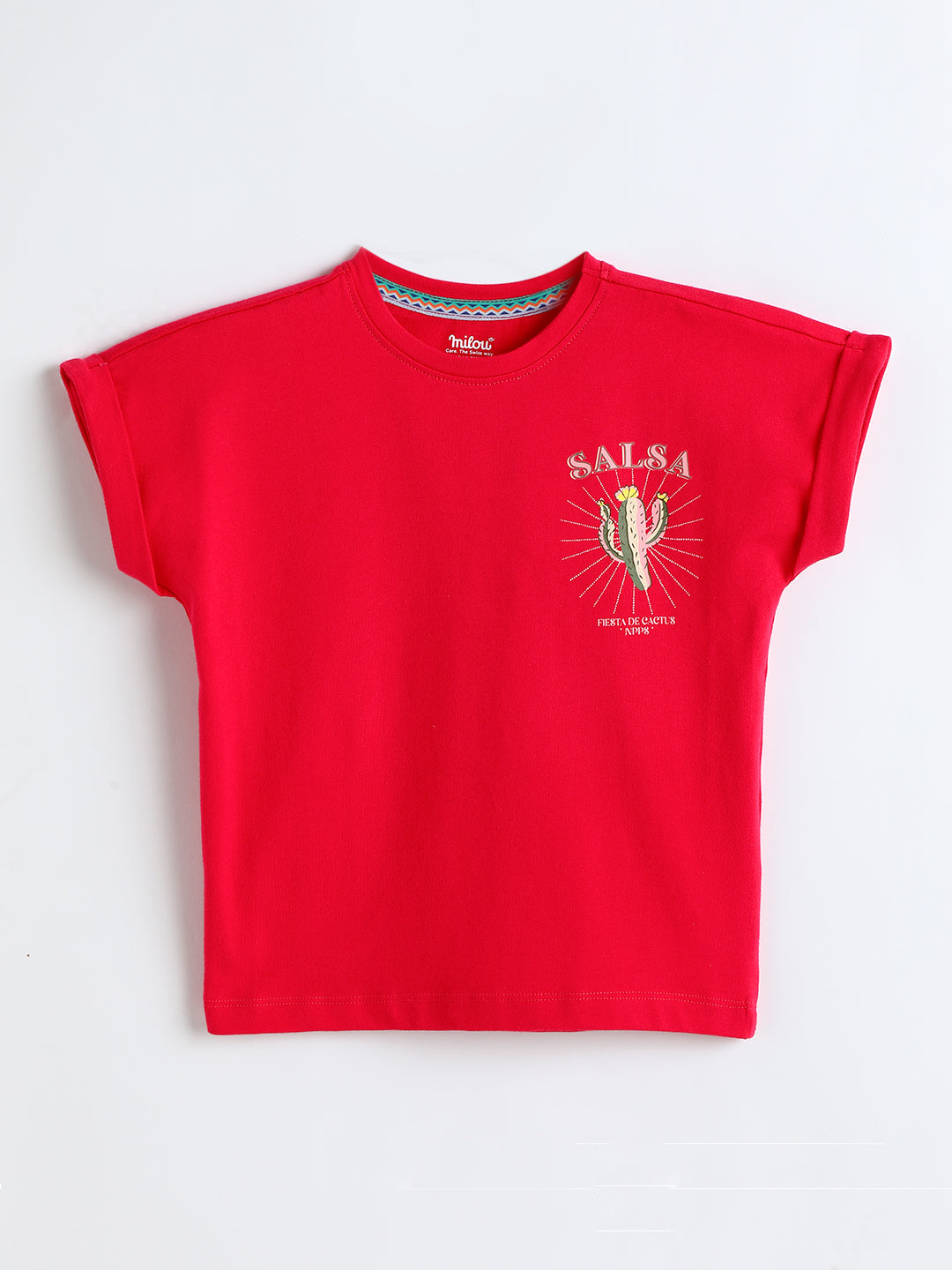 Half sleeve Round neck T-shirt. Crafted with the soft 100% Cotton fabric, treated with bio wash, to ensure the safest and most comfortable clothing for the young ones.