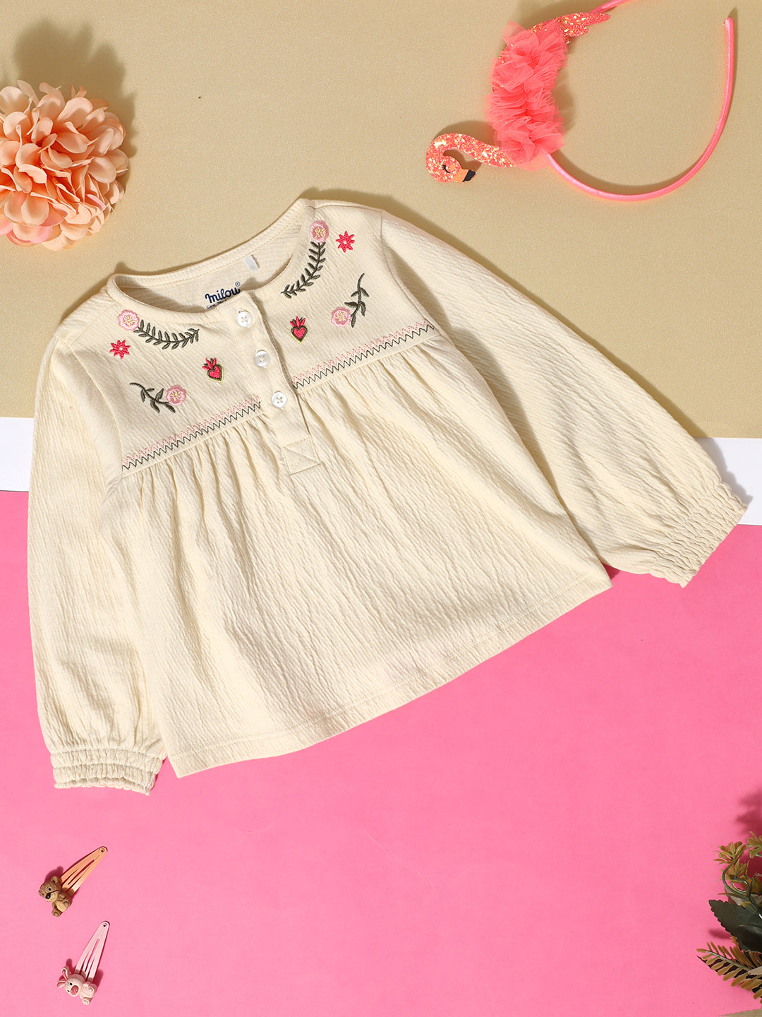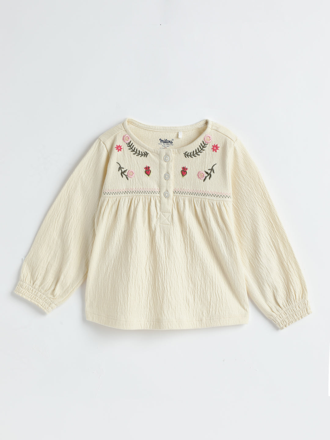 Full sleeve Round neck T-shirt. Crafted with the soft 100% Cotton fabric, treated with bio wash, to ensure the safest and most comfortable clothing for the young ones.